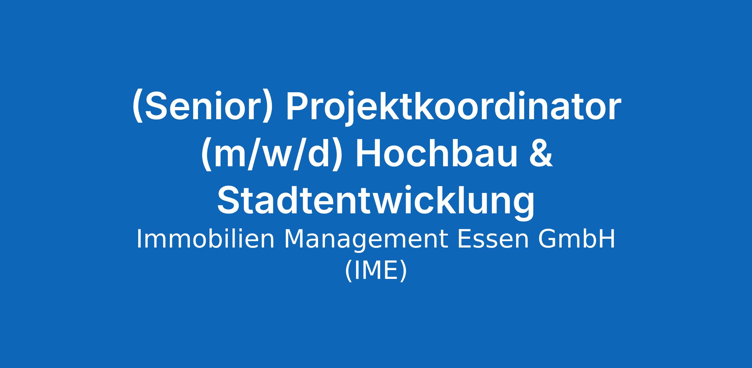 In der Technischen Steuerungseinheit der Immobilien Management Essen GmbH (IME) ist ab sofort in Vollzeit unbefristet folgende Position im Bereich Zentrale Projektkoordination zu besetzen: