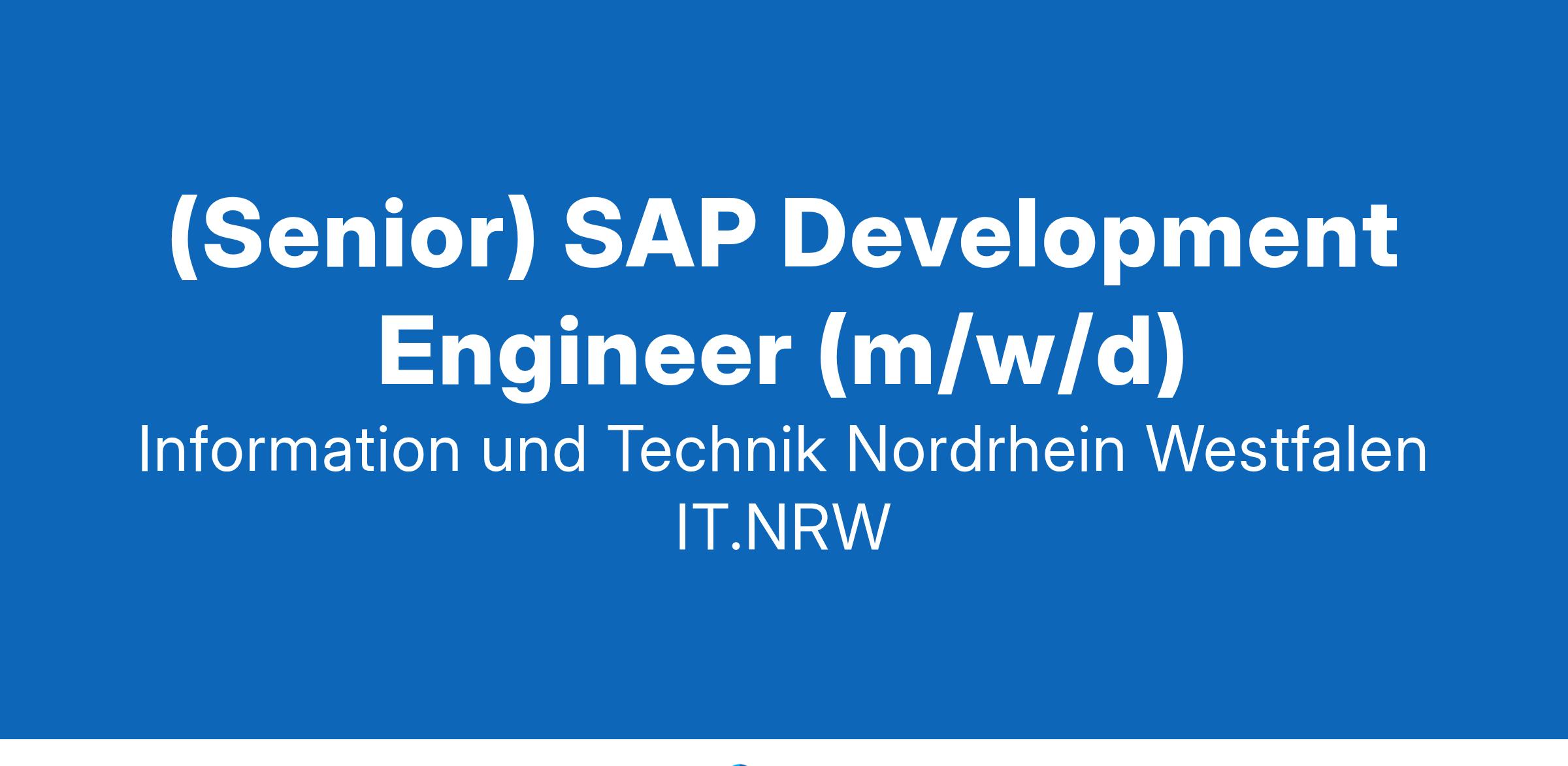 Bei IT.NRW geht es um mehr als „nur“ einen Job. Es geht um einen wichtigen gesellschaftlichen Auftrag: ein ganzes Bundesland digital vorwärtsbringen. Als (Senior) SAP Development Engineer (m/w/d) sind Sie für die SAP-Anwendungsentwicklung für das landesweite Verfahren NRWave (Personalabrechnung) zuständig und gestalten so die digitale Zukunft der Landesverwaltung ausschlaggebend mit. Bringen Sie sich jetzt ein und leisten Sie einen wichtigen Beitrag für 18 Millionen Bürgerinnen und Bürger in NRW!