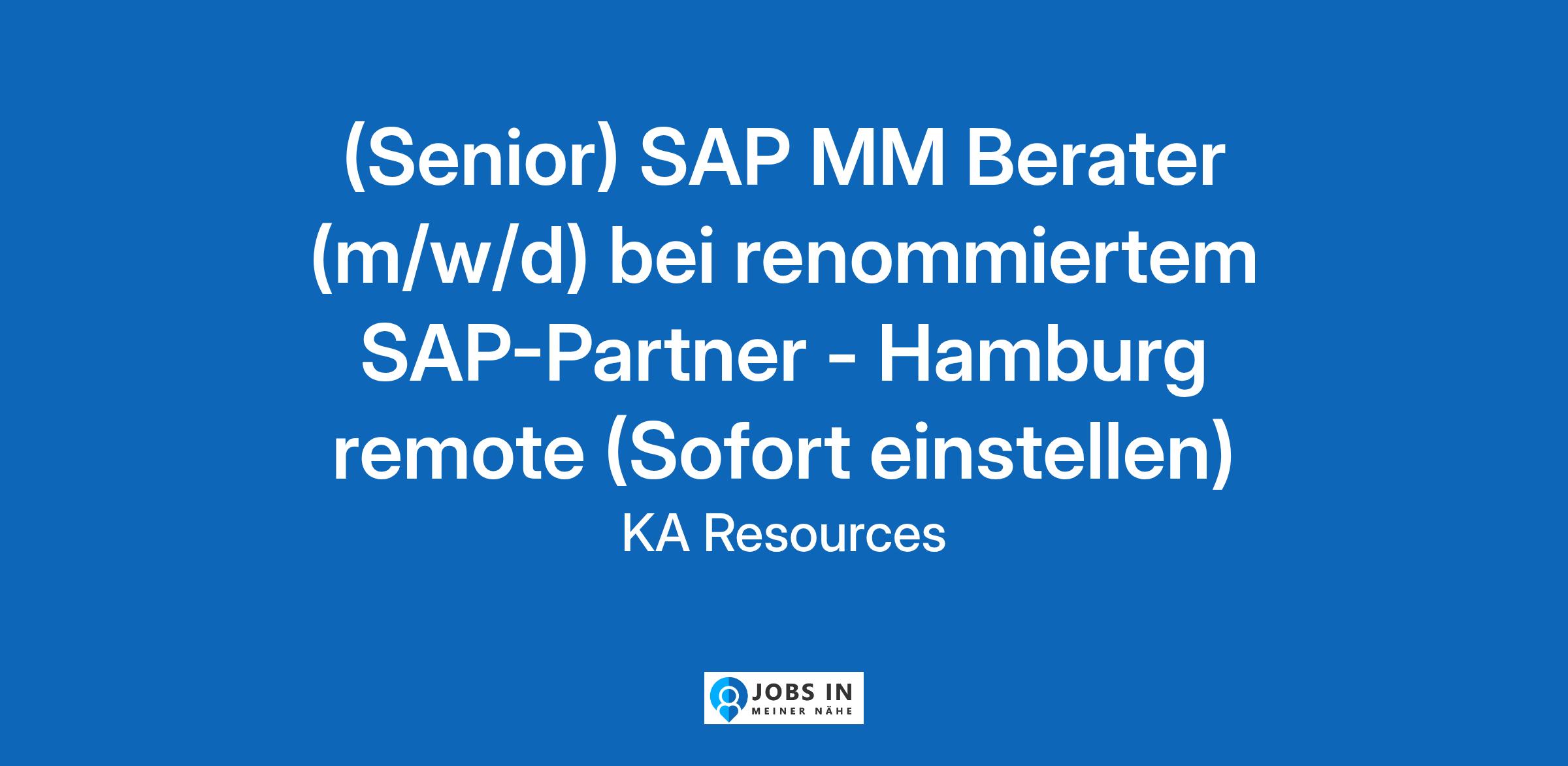 Die Zukunft startet heute sicherlich fragen Sie sich nun, warum diese Stellenanzeige mit so einem langweiligen Zitat startet. Ganz einfach: Weil es wahr ist. Aus diesem Grunde sucht unser Kunde Sie als (Senior) SAP MM Berater (m/w/d) , um als Teil eines groartigen Teams, Unternehmen auf ihrem Weg der digitalen Transformation zu begleiten und die Weichen fr eine erfolgreiche Zukunft zu stellen.Das Unternehmen ist bekannt dafr, seine Kunden mit umfassendem Know-how zu beraten und dabei mit hchster Qualitt zu glnzen. Bei diesen Kunden handelt es sich sowohl um den Mittelstand als auch Konzerne weltweit. Mit klarem Fokus auf zukunftsweisende Konzepte gehrt unser Kunde zu den Marktfhrern unter den international etablierten Beratungshusern. Sie haben jetzt die Mglichkeit, Teil eines familiren Teams und dieser auergewhnlichen Erfolgsgeschichte zu werden.In Ihrer neuen Position untersttzen Sie Projekte fr nationale und internationale Kunden in smtlichen Phasen ihrer Projekte von der Planung, ber das Design und der Erstellung von Prototypen bis hin zur Implementierung. Sie agieren als kompetenter Ansprechpartner, um die Geschftsprozesse im Bereich MM zu optimieren, organisieren Workshops und fhren diese durch. Auerdem haben Sie die Mglichkeit, Ihr Talent als Teilprojekt-/Projektleitung unter Beweis zu stellen.Unser Kunde bietet Ihnen spannende und prozessorientierte Projekte, an welchen Sie eng verzahnt in einem kleinen Team arbeiten. Die Arbeit findet auerhalb der Prsenzzeiten bei Kunden im Hybrid-Modell oder remote statt. Sie arbeiten in einer 40-Stunden-Woche mit Vertrauensarbeitszeiten und 30 Tagen Urlaub. Auerdem bietet Ihnen das Unternehmen einen Zuschuss zu Ihrer betrieblichen Altersvorsorge, ein Jobrad, ein betriebliches Gesundheitsmanagement und weitere Benefits, wie z.B. Schulungen und Sprachkurse, Corporate Benefits und vieles mehr. Kurzbeschreibung: