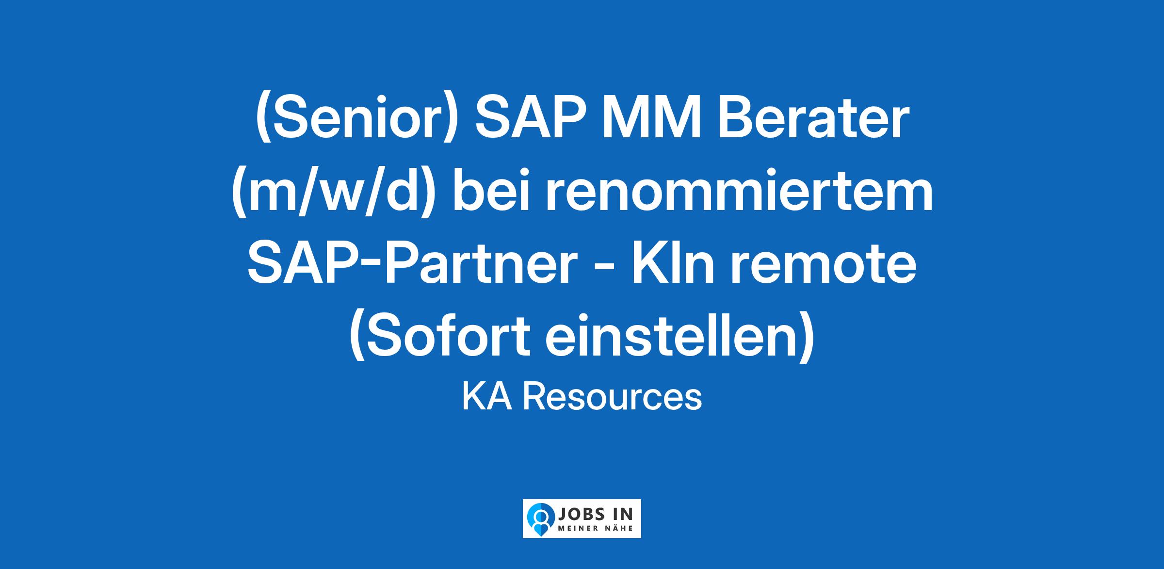 Die Zukunft startet heute sicherlich fragen Sie sich nun, warum diese Stellenanzeige mit so einem langweiligen Zitat startet. Ganz einfach: Weil es wahr ist. Aus diesem Grunde sucht unser Kunde Sie als (Senior) SAP MM Berater (m/w/d) , um als Teil eines groartigen Teams, Unternehmen auf ihrem Weg der digitalen Transformation zu begleiten und die Weichen fr eine erfolgreiche Zukunft zu stellen.Das Unternehmen ist bekannt dafr, seine Kunden mit umfassendem Know-how zu beraten und dabei mit hchster Qualitt zu glnzen. Bei diesen Kunden handelt es sich sowohl um den Mittelstand als auch Konzerne weltweit. Mit klarem Fokus auf zukunftsweisende Konzepte gehrt unser Kunde zu den Marktfhrern unter den international etablierten Beratungshusern. Sie haben jetzt die Mglichkeit, Teil eines familiren Teams und dieser auergewhnlichen Erfolgsgeschichte zu werden.In Ihrer neuen Position untersttzen Sie Projekte fr nationale und internationale Kunden in smtlichen Phasen ihrer Projekte von der Planung, ber das Design und der Erstellung von Prototypen bis hin zur Implementierung. Sie agieren als kompetenter Ansprechpartner, um die Geschftsprozesse im Bereich MM zu optimieren, organisieren Workshops und fhren diese durch. Auerdem haben Sie die Mglichkeit, Ihr Talent als Teilprojekt-/Projektleitung unter Beweis zu stellen.Unser Kunde bietet Ihnen spannende und prozessorientierte Projekte, an welchen Sie eng verzahnt in einem kleinen Team arbeiten. Die Arbeit findet auerhalb der Prsenzzeiten bei Kunden im Hybrid-Modell oder remote statt. Sie arbeiten in einer 40-Stunden-Woche mit Vertrauensarbeitszeiten und 30 Tagen Urlaub. Auerdem bietet Ihnen das Unternehmen einen Zuschuss zu Ihrer betrieblichen Altersvorsorge, ein Jobrad, ein betriebliches Gesundheitsmanagement und weitere Benefits, wie z.B. Schulungen und Sprachkurse, Corporate Benefits und vieles mehr. Kurzbeschreibung: