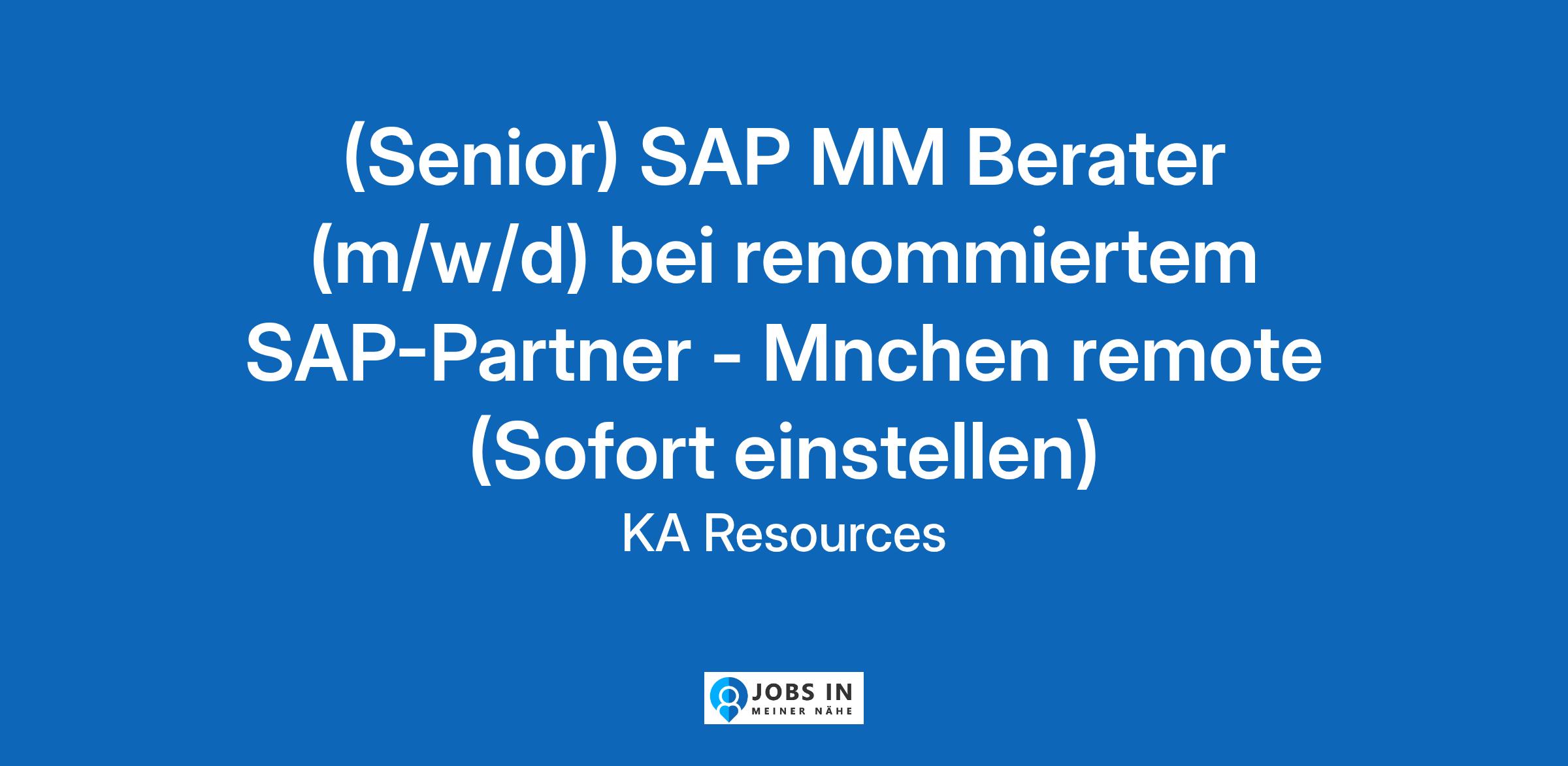 Die Zukunft startet heute sicherlich fragen Sie sich nun, warum diese Stellenanzeige mit so einem langweiligen Zitat startet. Ganz einfach: Weil es wahr ist. Aus diesem Grunde sucht unser Kunde Sie als (Senior) SAP MM Berater (m/w/d) , um als Teil eines groartigen Teams, Unternehmen auf ihrem Weg der digitalen Transformation zu begleiten und die Weichen fr eine erfolgreiche Zukunft zu stellen.Das Unternehmen ist bekannt dafr, seine Kunden mit umfassendem Know-how zu beraten und dabei mit hchster Qualitt zu glnzen. Bei diesen Kunden handelt es sich sowohl um den Mittelstand als auch Konzerne weltweit. Mit klarem Fokus auf zukunftsweisende Konzepte gehrt unser Kunde zu den Marktfhrern unter den international etablierten Beratungshusern. Sie haben jetzt die Mglichkeit, Teil eines familiren Teams und dieser auergewhnlichen Erfolgsgeschichte zu werden.