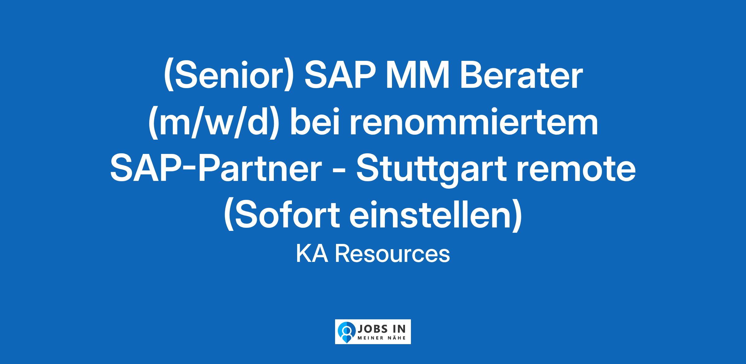 (Senior) SAP MM Berater (m/w/d) bei renommiertem SAP-Partner - Stuttgart remote (Sofort einstellen)