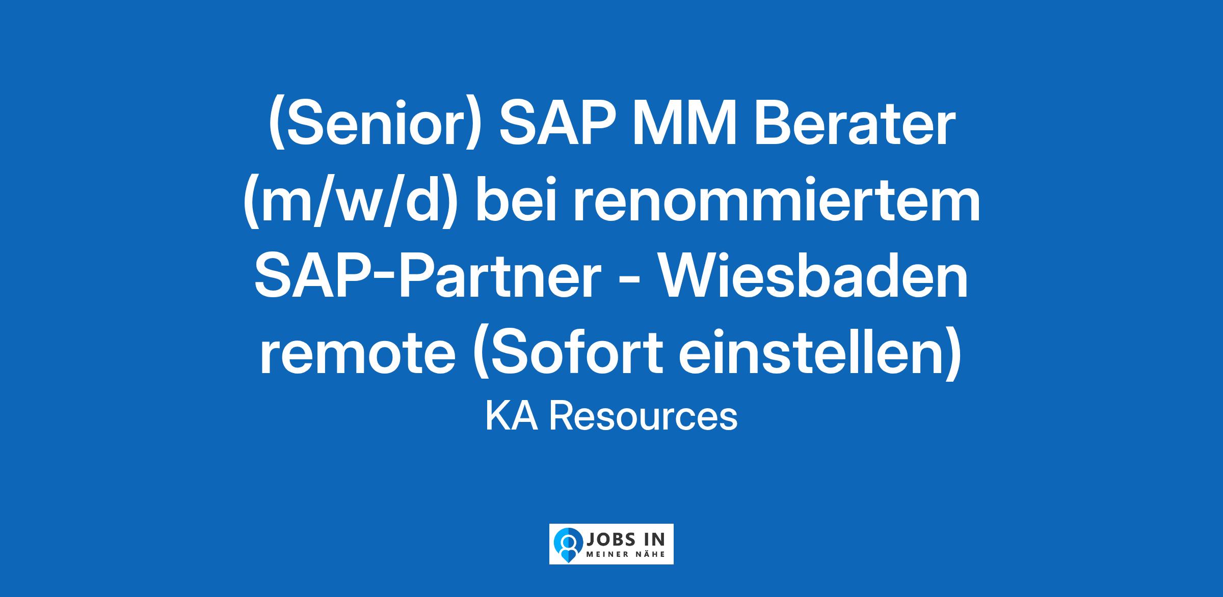 Die Zukunft startet heute sicherlich fragen Sie sich nun, warum diese Stellenanzeige mit so einem langweiligen Zitat startet. Ganz einfach: Weil es wahr ist. Aus diesem Grunde sucht unser Kunde Sie als (Senior) SAP MM Berater (m/w/d) , um als Teil eines groartigen Teams, Unternehmen auf ihrem Weg der digitalen Transformation zu begleiten und die Weichen fr eine erfolgreiche Zukunft zu stellen.Das Unternehmen ist bekannt dafr, seine Kunden mit umfassendem Know-how zu beraten und dabei mit hchster Qualitt zu glnzen. Bei diesen Kunden handelt es sich sowohl um den Mittelstand als auch Konzerne weltweit. Mit klarem Fokus auf zukunftsweisende Konzepte gehrt unser Kunde zu den Marktfhrern unter den international etablierten Beratungshusern. Sie haben jetzt die Mglichkeit, Teil eines familiren Teams und dieser auergewhnlichen Erfolgsgeschichte zu werden.In Ihrer neuen Position untersttzen Sie Projekte fr nationale und internationale Kunden in smtlichen Phasen ihrer Projekte von der Planung, ber das Design und der Erstellung von Prototypen bis hin zur Implementierung. Sie agieren als kompetenter Ansprechpartner, um die Geschftsprozesse im Bereich MM zu optimieren, organisieren Workshops und fhren diese durch. Auerdem haben Sie die Mglichkeit, Ihr Talent als Teilprojekt-/Projektleitung unter Beweis zu stellen.Unser Kunde bietet Ihnen spannende und prozessorientierte Projekte, an welchen Sie eng verzahnt in einem kleinen Team arbeiten. Die Arbeit findet auerhalb der Prsenzzeiten bei Kunden im Hybrid-Modell oder remote statt. Sie arbeiten in einer 40-Stunden-Woche mit Vertrauensarbeitszeiten und 30 Tagen Urlaub. Auerdem bietet Ihnen das Unternehmen einen Zuschuss zu Ihrer betrieblichen Altersvorsorge, ein Jobrad, ein betriebliches Gesundheitsmanagement und weitere Benefits, wie z.B. Schulungen und Sprachkurse, Corporate Benefits und vieles mehr. Kurzbeschreibung: