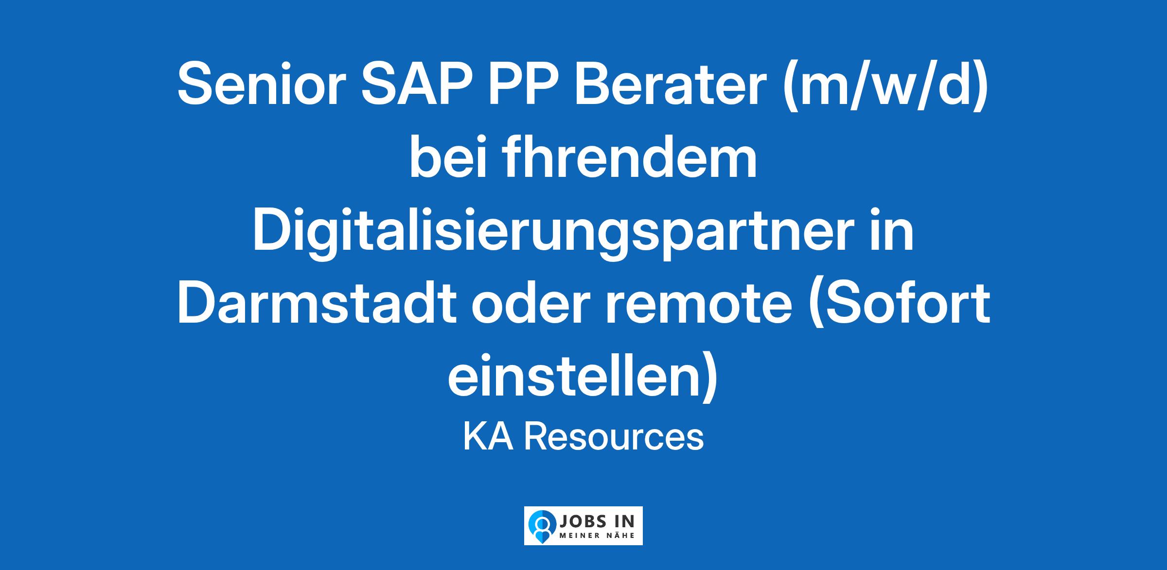 Wenn das Thema S/4HANA Ihnen ein Lcheln ins Gesicht zaubert und Sie auerdem Lust auf spannende Projekte im Bereich SAP PP haben, wartet schon morgen Ihr neuer Arbeitsplatz als Senior SAP PP Berater (m/w/d) mit vielfltigen Aufgaben und Weiterbildungsmglichkeiten auf Sie.Bei unserem Kunden handelt es sich um einen der fhrenden, internationalen Dienstleister im Bereich der digitalen Transformation und einen starken Partner des deutschen Mittelstands und diverser internationaler Grokunden. Das agile Unternehmen steht fr Erfahrung, Verlsslichkeit und Kommunikation auf Augenhhe. Flache Hierarchien geben Ihnen den richtigen Handlungsspielraum, um Verantwortung zu bernehmen und Vernderungen mitzugestalten.In Ihrer neuen Position begleiten Sie Kundenprojekte in allen Projektphasen. Dies umfasst sowohl die Planung und Erstellung von Konzepten, das Design und Customizing, als auch das Roll-out sowie nicht zuletzt die Umstellung auf S/4HANA. Sie beraten bei Projekten hinsichtlich Migrationen, der Steuerung der Produktion und der Materialplanung. Die Erstellung von Analysen zur Situation des Kunden sowie die Erarbeitung von Konzepten, Optimierungen und Umsetzungen von Prozessen in der Materialwirtschaft runden Ihren Aufgabenbereich ab. Zustzlich planen Sie Schulungen und Workshops, welche Sie anschlieend durchfhren.Unser Kunde bietet Ihnen spannende, prozessorientierte Projekte im Bereich S/4 HANA, an welchen Sie eng verzahnt in einem kleinen Team arbeiten, in welchem Sie auch die Teilprojektleitung bernehmen. Von wo aus Sie arbeiten, ist Ihnen berlassen. Unser Kunde bietet Ihnen die Mglichkeit, auerhalb der Prsenzzeiten bei seinen Kunden komplett remote zu arbeiten. Die Anwesenheit in einem der diversen, modernen, deutschlandweit verteilten Bros ist Ihnen freigestellt. Sie arbeiten in einer 40-Stunden-Woche oder in Teilzeit mit flexiblen Arbeitszeitmodellen und knnen sich ber 30 Tage Urlaub freuen.Wenn Sie motiviert sind und sich weiterbilden mchten, ist Ihr neuer Arbeitgeber gerne bereit, mit Ihnen ber die vielen individuellen Mglichkeiten, wie z.B. Inhouse-Schulungen oder SAP-Zertifizierungen zu sprechen. Zgern Sie also nicht und bewerben Sie sich noch heute. Kurzbeschreibung: