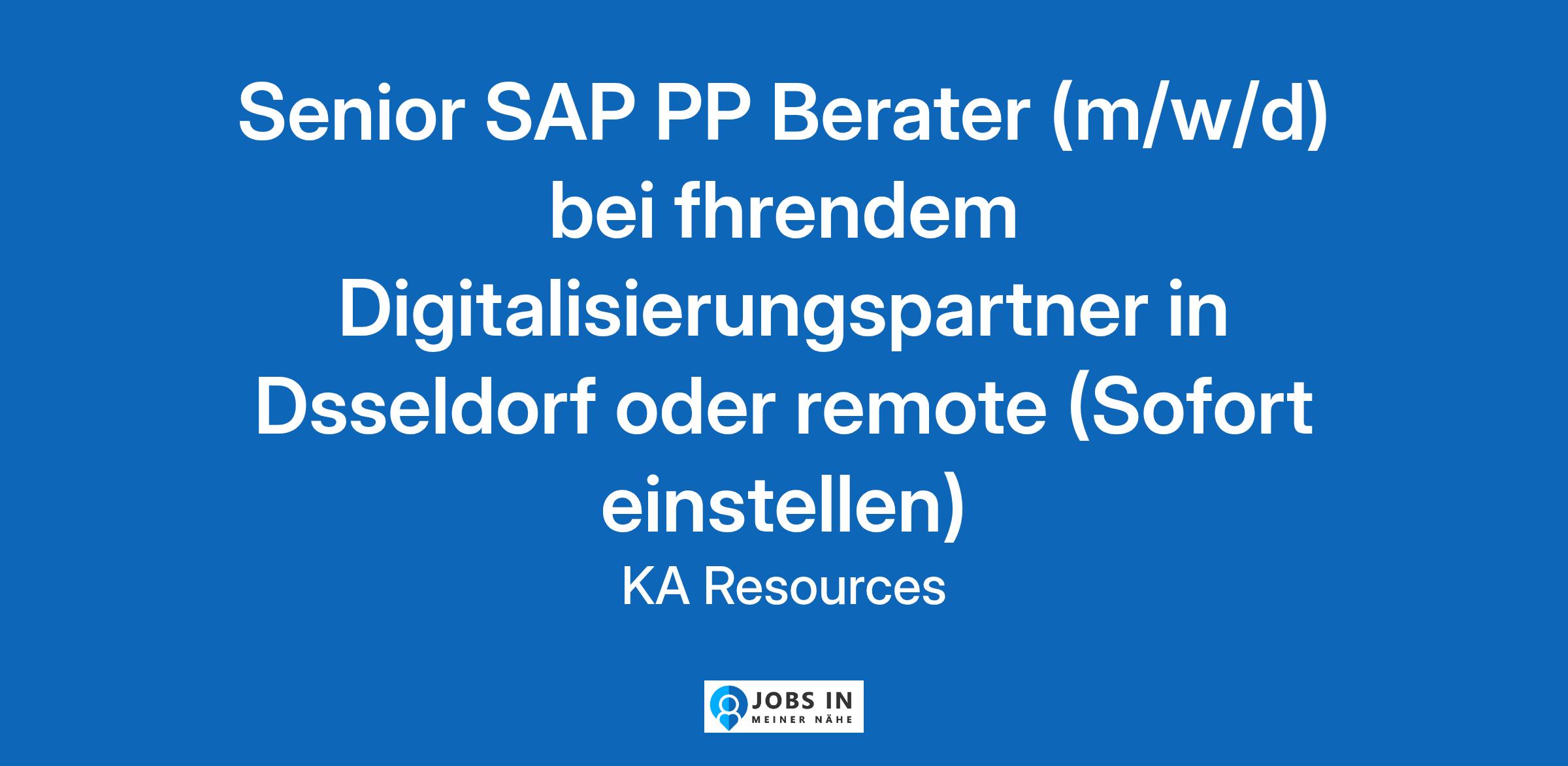 Senior SAP PP Berater (m/w/d) bei fhrendem Digitalisierungspartner in Dsseldorf oder remote (Sofort einstellen)
