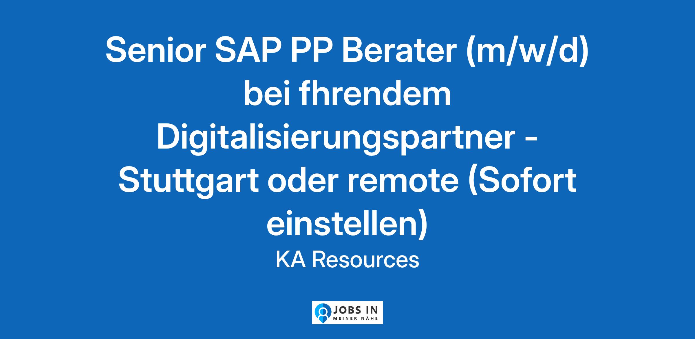 Senior SAP PP Berater (m/w/d) bei fhrendem Digitalisierungspartner - Stuttgart oder remote (Sofort einstellen)