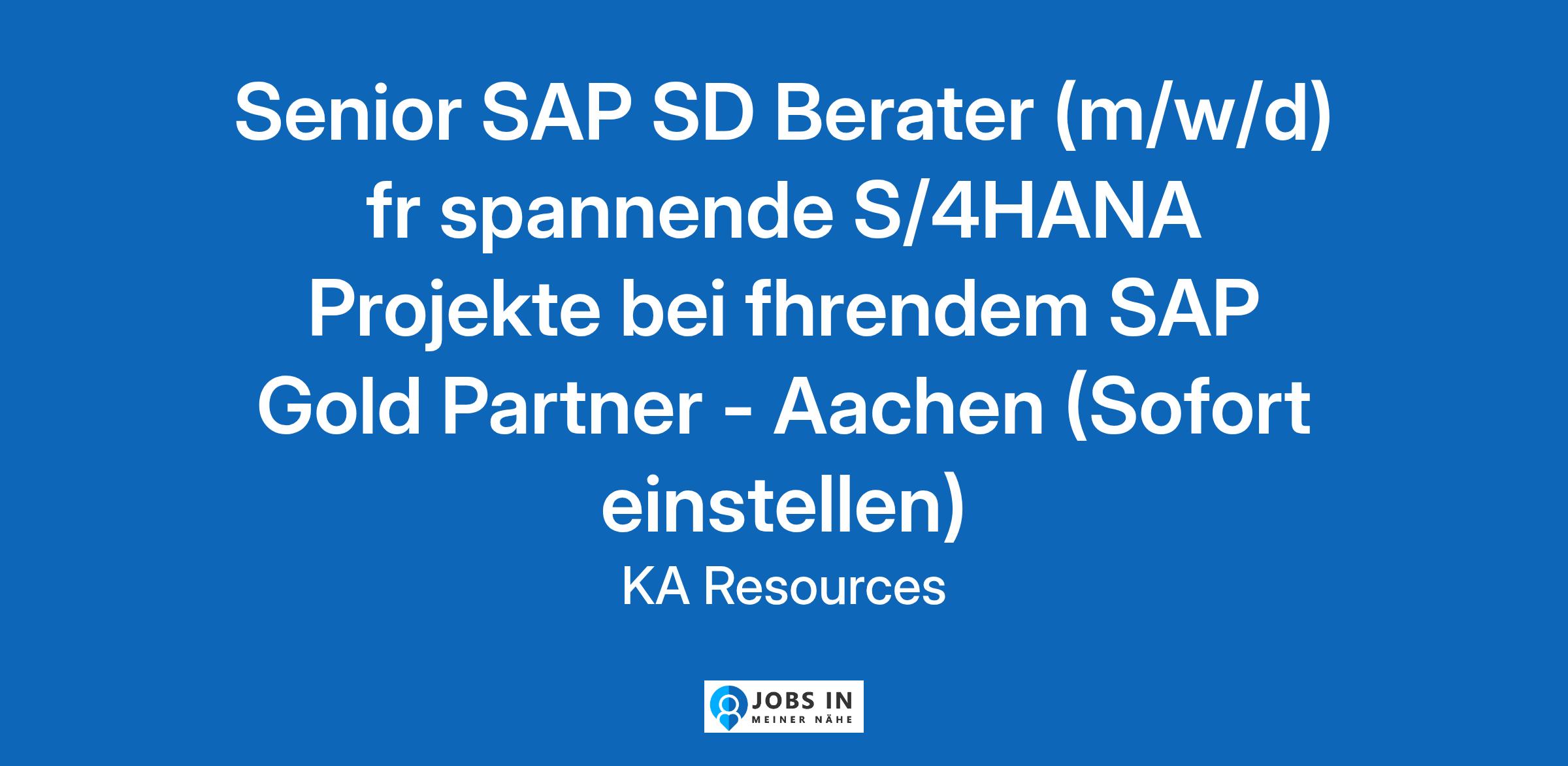 Senior SAP SD Berater (m/w/d) fr spannende S/4HANA Projekte bei fhrendem SAP Gold Partner - Aachen (Sofort einstellen)