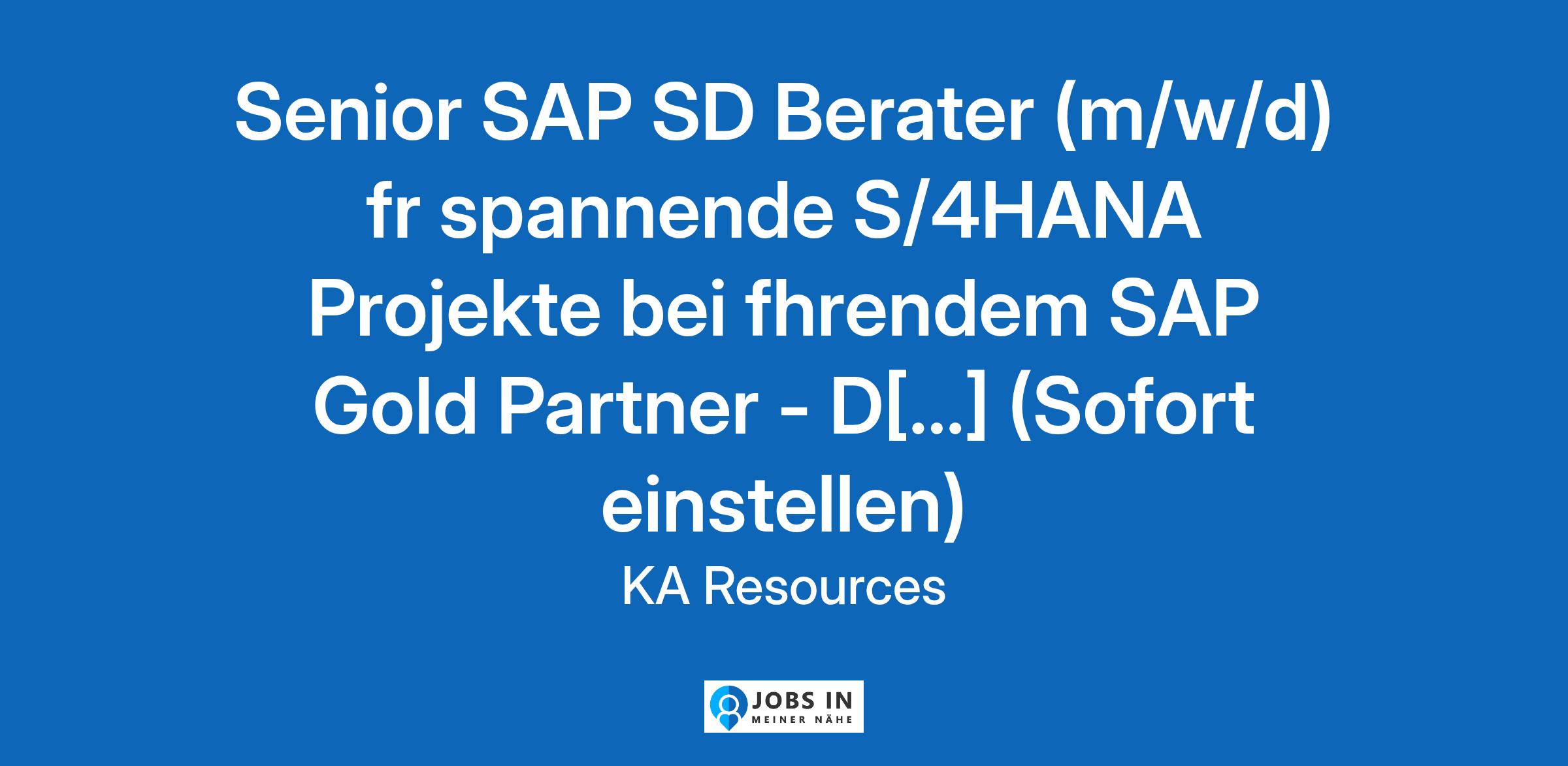 Senior SAP SD Berater (m/w/d) fr spannende S/4HANA Projekte bei fhrendem SAP Gold Partner - D[...] (Sofort einstellen)