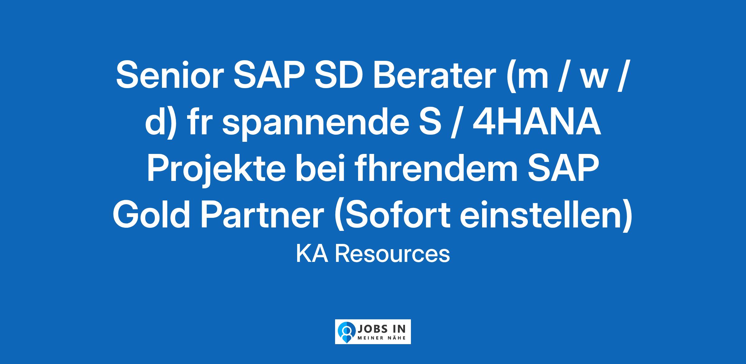 Senior SAP SD Berater (m / w / d) fr spannende S / 4HANA Projekte bei fhrendem SAP Gold Partner (Sofort einstellen)