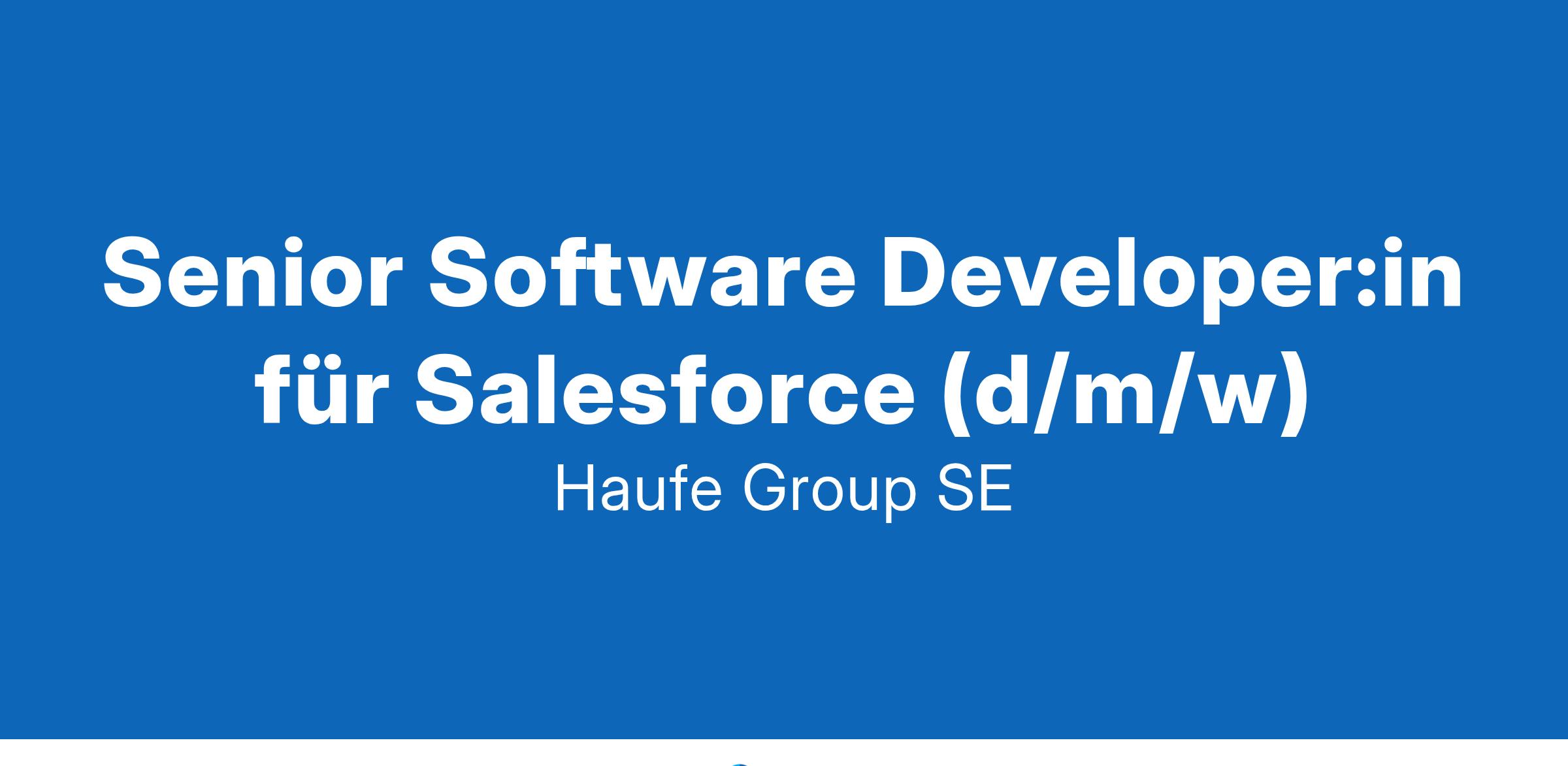 DAS BRINGST DU MIT: Du hast bereits mehrjährige Erfahrung in der Entwicklung mit Salesforce gesammelt und ein erfolgreicher Track Record zeichnet dich aus Du bist sicher im Umgang mit Apex, Visualforce, Lightning und verwandten Technologien Du kannst technische Konzepte sowohl technischen als auch nicht-technischen Zielgruppen nahebringen Idealerweise hast du bereits Projektteams geleitet und bist mit der Zusammenarbeit verschiedener Stakeholder vertraut Selbstständiges Arbeiten und ein gutes Zeitmanagement gehört zu deinen Stärken Wissen in agilen Methoden wie Scrum oder Kanban ist von Vorteil Sehr gute Deutschkenntnisse (mind. B2) und gute Englischkenntnisse runden dein Profil ab DAS BIETEN WIR DIR:In der Haufe Group schaffen wir wegweisende Arbeitsbedingungen, in denen sich jede:r von uns optimal einbringen und entfalten kann. Bei uns erhältst du Raum und Verantwortung, arbeitest hybrid mit flexiblen Arbeitszeiten und hast vielfältige Weiterbildungs- und Entwicklungsmöglichkeiten. Wir sind erlebbar und ganz offiziell ein Great Place to Work.