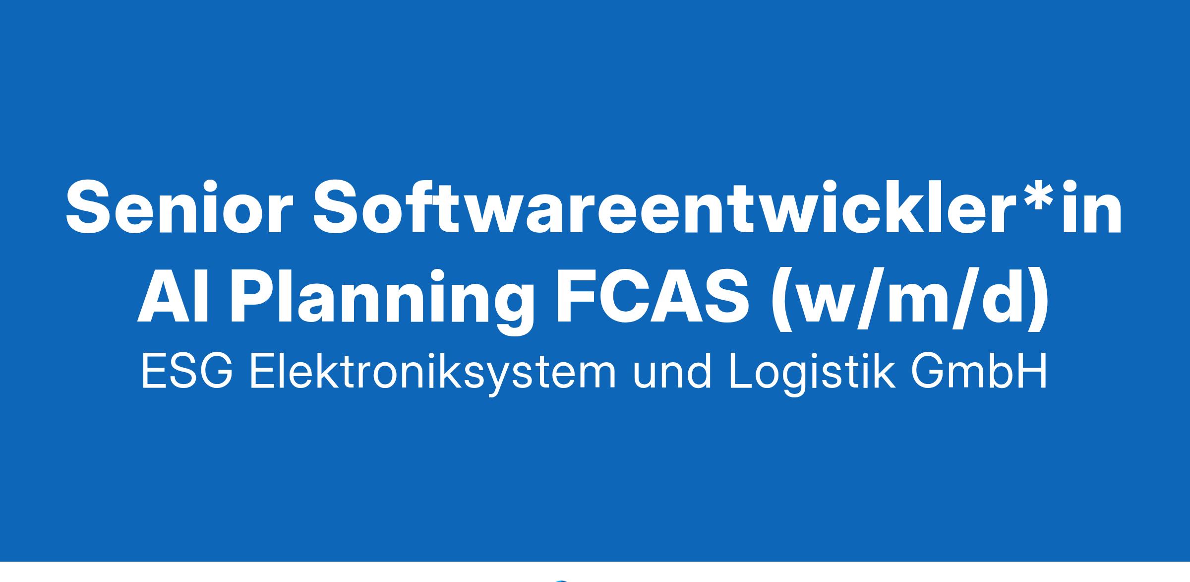 GEMEINSAM FÜR DIE SICHERSTE LÖSUNG. Als Technologie- und Innovationspartner im Bereich Verteidigung und öffentliche Sicherheit entwickeln und integrieren wir Lösungen, die Vertrauen schaffen. Wir sind die Experten, wenn es darum geht, einzelne Strukturen und Komponenten zu einem Gesamtsystem zu integrieren. In allen Schritten - von der Entwicklung über die Realisierung bis hin zum Betrieb komplexer Systeme - steckt das Wissen und die Leidenschaft unserer Teams. Senior Softwareentwickler*in AI Planning FCAS (w/m/d) Aufgaben: Das Future Combat Air System (FCAS) ist ein multinationales Programm zur Entwicklung eines System-of-System für den Luftkampf der Zukunft. Die ESG ist hierbei sowohl in multinationalen, als auch nationalen Projekten beauftragt. Die ESG hat für FCAS ein Programm mit einer agilen Entwicklungsorganisation aufgestellt und die Entwicklungsteams Future Airborne Computing, Mission und Sensor Automation und Human System Interface gebildet.