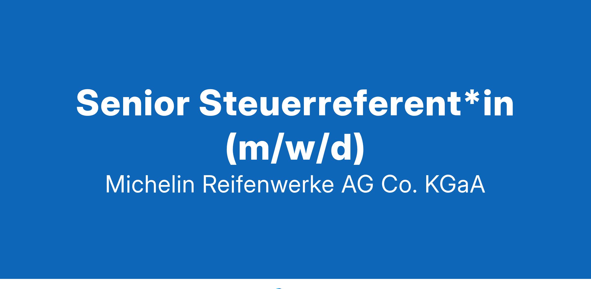 Für die Michelin Reifenwerke AG & Co. KGaA am Standort Frankfurt am Main suchen wir dich als Senior Steuerreferent*in (m/w/d) | Unbefristet | Vollzeit