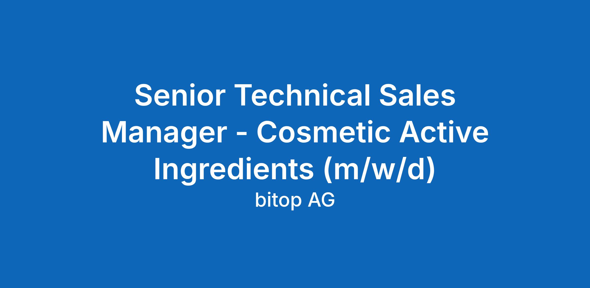 Senior Technical Sales Manager – Cosmetic Active Ingredients (m/w/d)
