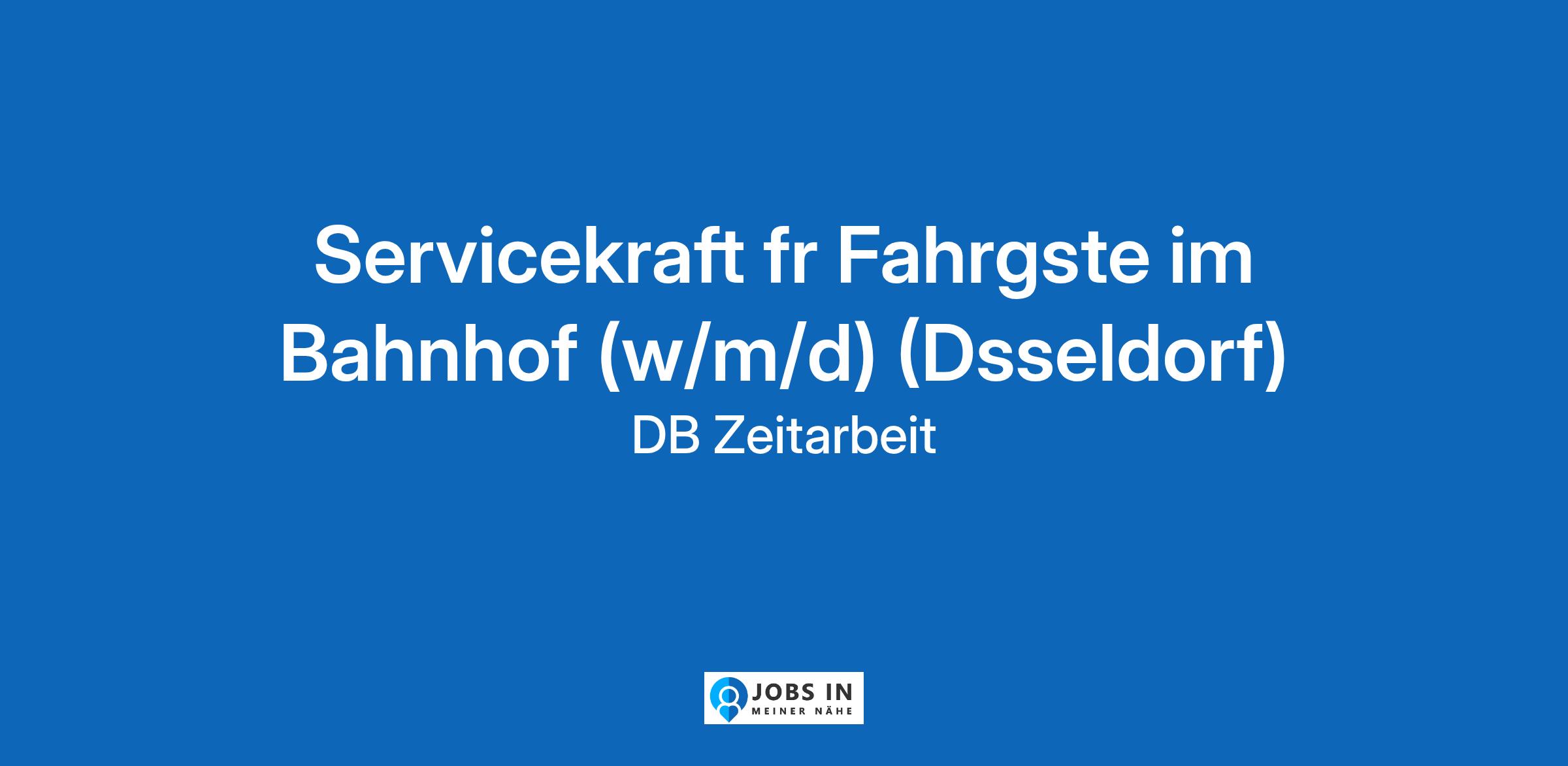 Zum nchstmglichen Zeitpunkt suchen wir dich als Zeitarbeitnehmer:in im Auftrag der DB InfraGO AG fr einen Einsatz als Servicekraft fr Fahrgste im Bahnhof (w/m/d) am Standort Dsseldorf Hbf und Dsseldorf Bahnhof Flughafen. Als Zeitarbeitnehmer:in erbringst du deine Arbeitsleistung direkt vor Ort im genannten Geschftsfeld, whrend du dein Arbeitsverhltnis mit uns, der DB Zeitarbeit, abschliet.