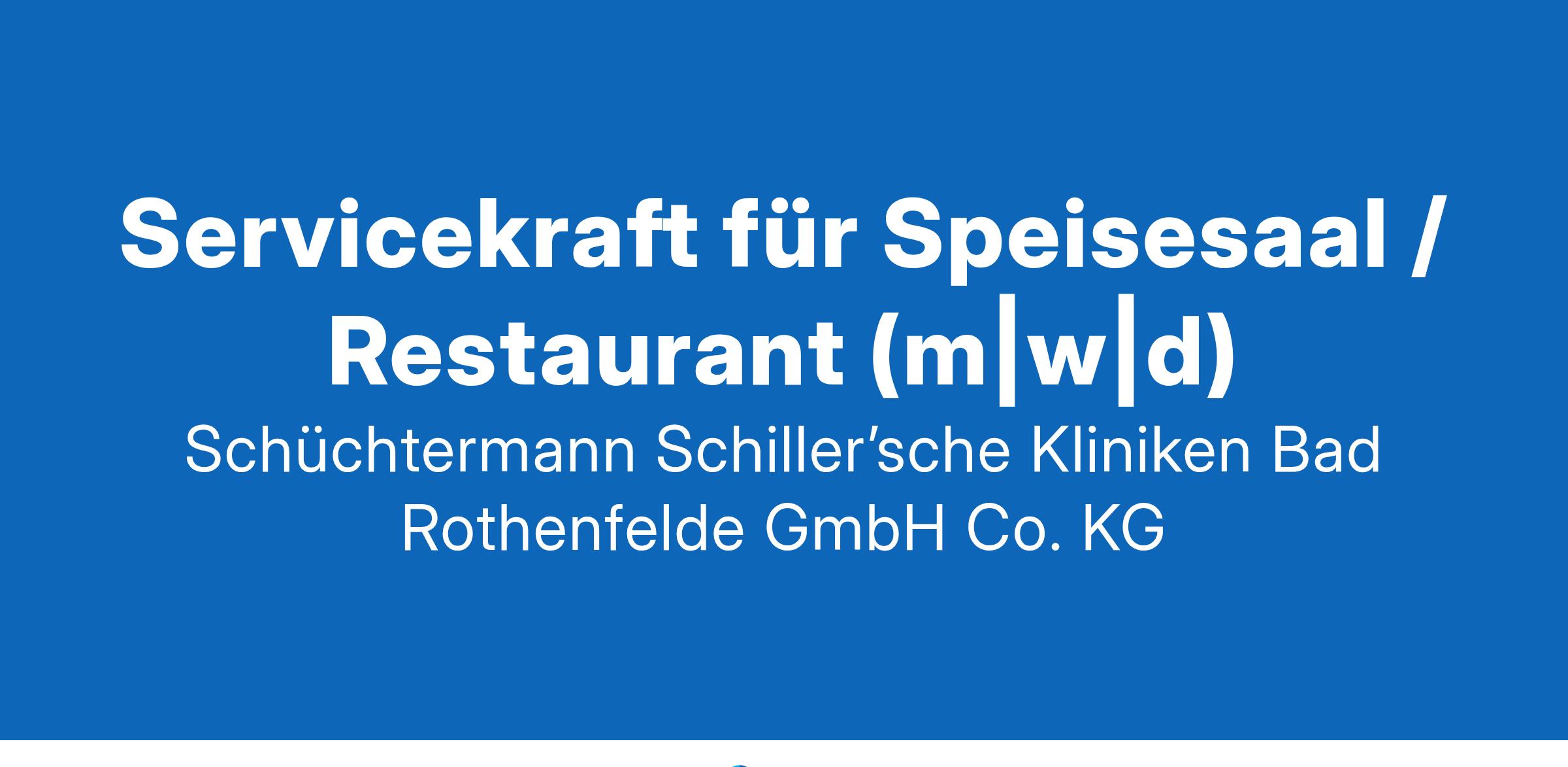 Die Dörenberg-Klinik Bad Iburg ist eine Einrichtung der Schüchtermann-Schiller ́schen Familienstiftung. Wir fungieren als Schwerpunktklinik für orthopädische, geriatrische und neurologische Rehabilitation sowie berufsgenossenschaftliche stationäre Weiterbehandlung (BGSW). Mit über 230 Betten bieten wir verschiedene stationäre und ambulante Behandlungsformen an. An die Klinik ist ein Medizinisches Versorgungszentrum mit den Fachdisziplinen Neurologie und Rehabilitative Medizin angegliedert. Für den Standort Bad Iburg suchen wir zum frühestmöglichen Eintrittstermin eine Die Stelle kann in Teilzeit (bis zu 35 Wochenstunden) oder als Mini-Job ausgeübt werden.Ihre AufgabenIhre AufgabenServieren von Speisen und Getränken an Patienten mit allen Vor- und Nacharbeiten Sicherstellung und Überprüfung der Sauberkeit, Ordnung und Funktionalität im Speisesaal Eindecken und Reinigung der Tische und BuffetsIhr ProfilIhr ProfilServiceorientierung und Freude am eigenverantwortlichen Arbeiten Grundkenntnisse Hygiene, Arbeitsschutz und Unfallverhütung Ein Auge fürs Detail sowie Sauberkeit und Ordnung Gepflegtes Erscheinungsbild, positive Ausstrahlung und gute Umgangsformen Gelebte Herzlichkeit und Spaß im Umgang mit Menschen Immunnachweis MasernWir bietenWir bietenEin erfahrenes, kollegiales Team Corporate Benefits Kostenfreie private Nutzung der Schwimmhalle und des Trainingszentrums Eine vergünstigte ausgewogene und gesunde Frühstücks- und Mittagsverpflegung Prämiensystem bei Anwerbung von PersonalHaben wir Ihr Interesse geweckt?Bitte bewerben Sie sich online über unser Karriereportal unter www.doerenberg-klinik.de.
