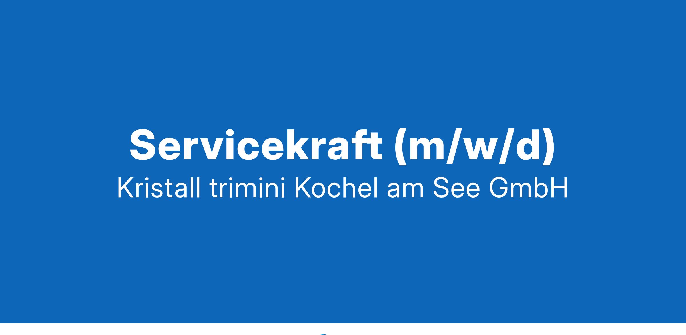 Die Kristall-Therme trimini in Kochel am See ist ein Unternehmen der Kristall Thermen Gruppe GmbH mit Sitz in Stein. Die Therme bietet mit diversen Innen- und Außenbecken, Vital-/Freizeitbad, Saunalandschaft, Osmanischem Hamam, Dampfbädern, Panorama-Dachterrasse, einem separaten Massage- und Kosmetikbereich und vielseitigen gastronomischen Angeboten Wellness und Entspannung auf höchstem Niveau. Für unsere Kristall-Therme trimini in Kochel am See suchen wir zum nächstmöglichen Zeitpunkt eine Servicekraft (m/w/d)