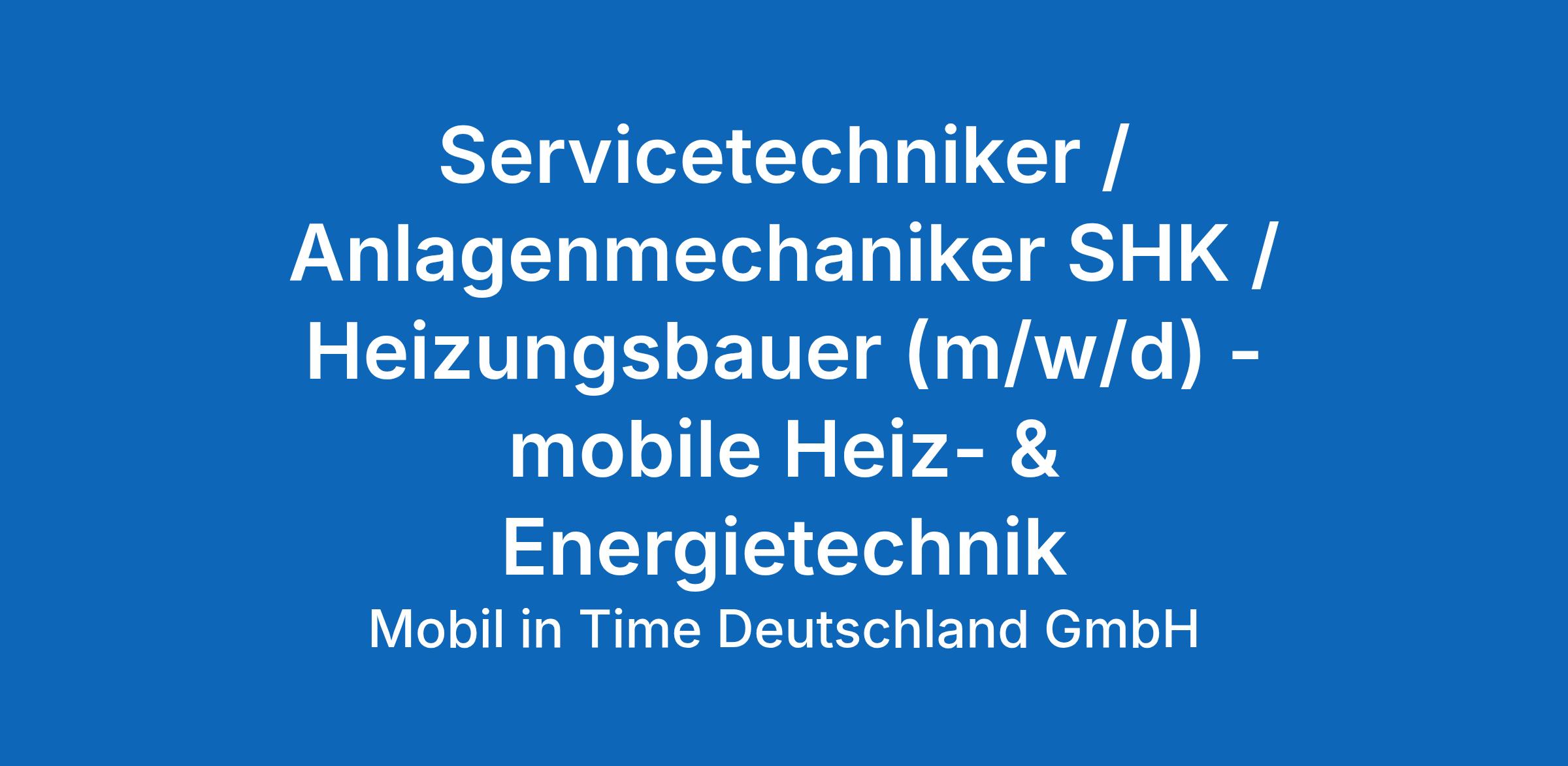 Servicetechniker / Anlagenmechaniker SHK / Heizungsbauer (m/w/d) – mobile Heiz- & Energietechnik