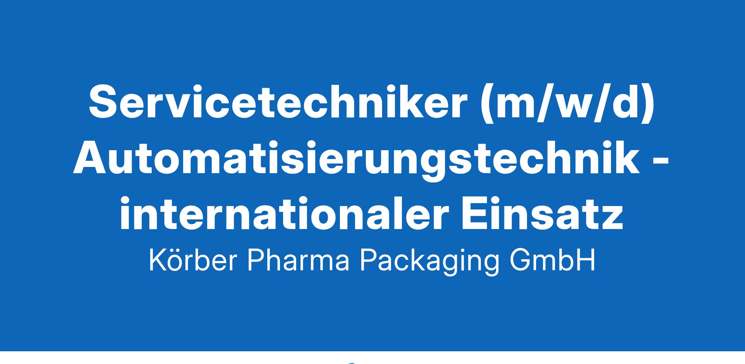 Unternehmen: Körber Pharma Packaging GmbHIhre Rolle in unserem TeamWerden Sie Teil unseres internationalen Serviceteams und sorgen Sie dafür, dass unsere Verpackungsanlagen weltweit reibungslos laufen!
