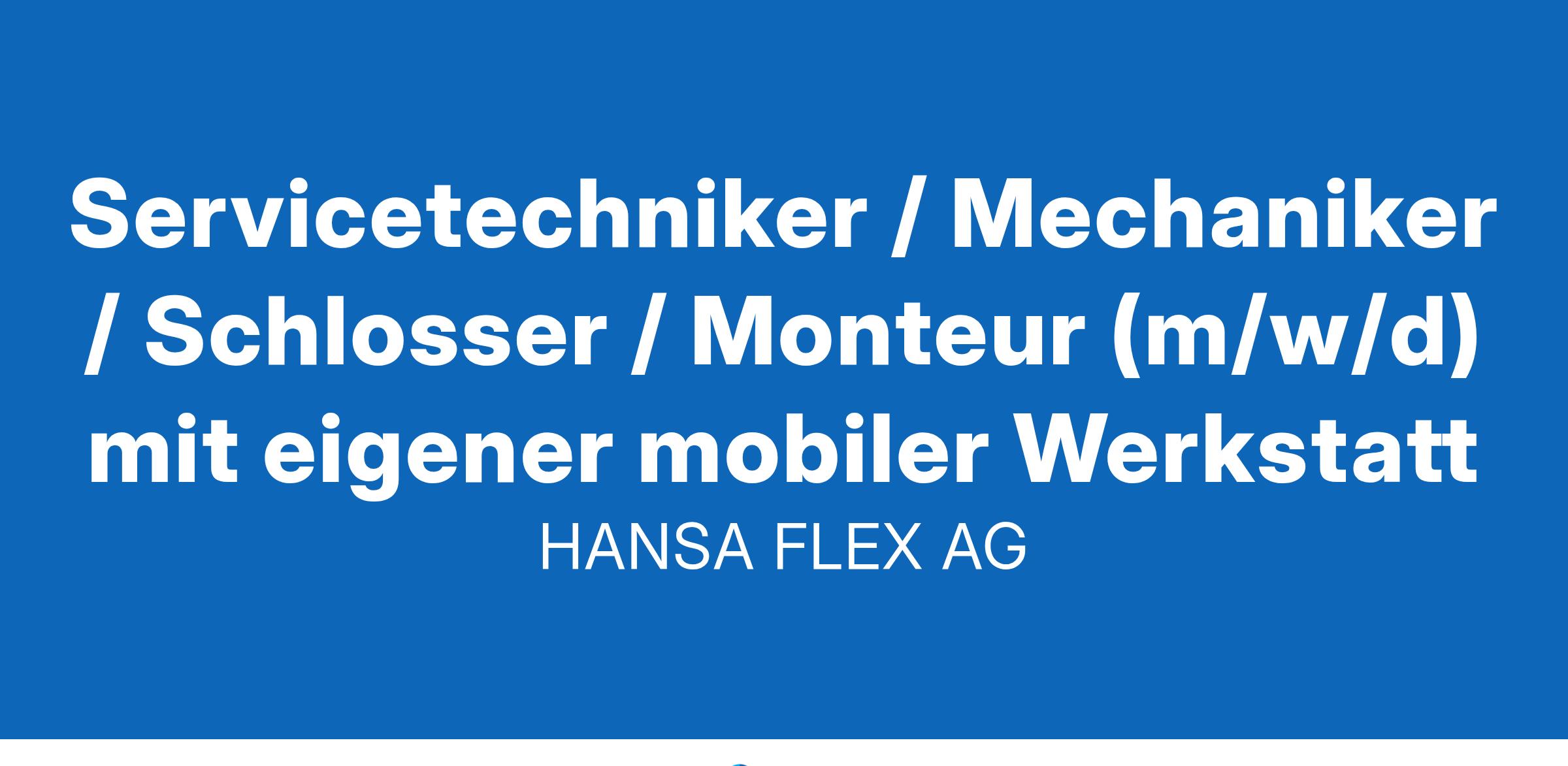 Servicetechniker / Mechaniker / Schlosser / Monteur (m/w/d) mit eigener mobiler Werkstatt Hier bewerben! Sie haben ein Herz für Maschinen? Dann sind Sie bei HANSA-FLEX genau richtig! Unsere Mission ist es, Maschinen mit modernster Hydraulik (wieder) zum Laufen zu bringen. Ob Schläuche, Rohre, Pumpen oder Zylinder: Unsere hohen Qualitätsansprüche und unser unermüdlicher Einsatz für den Kunden haben uns zu einem der international führenden Unternehmen für hydraulische Verbindungstechnik gemacht. Das höchste Gut unseres Familienunternehmens sind dabei unsere 5.000 Mitarbeiter*innen. Für den Mobilen Hydraulik-Sofortservice suchen wir Sie für den Großraum Celle zur Unterstützung als Servicetechniker / Mechaniker / Schlosser / Monteur (m/w/d) mit eigener mobiler Werkstatt. Hier setzen Sie Ihre Energie ein: