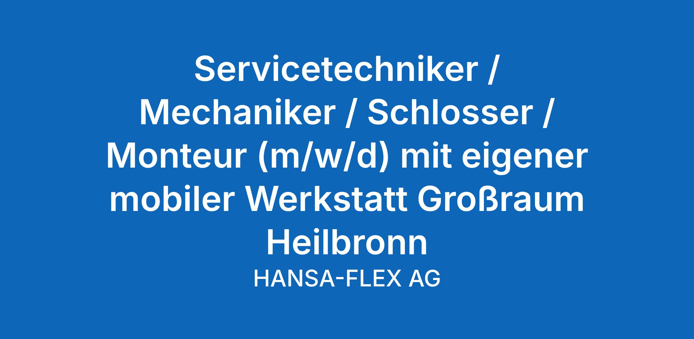 Für den Mobilen Hydraulik-Sofortservice suchen wir Sie für den Großraum Heilbronn zur Unterstützung als Servicetechniker / Mechaniker / Schlosser / Monteur (m/w/d) mit eigener mobiler Werkstatt.