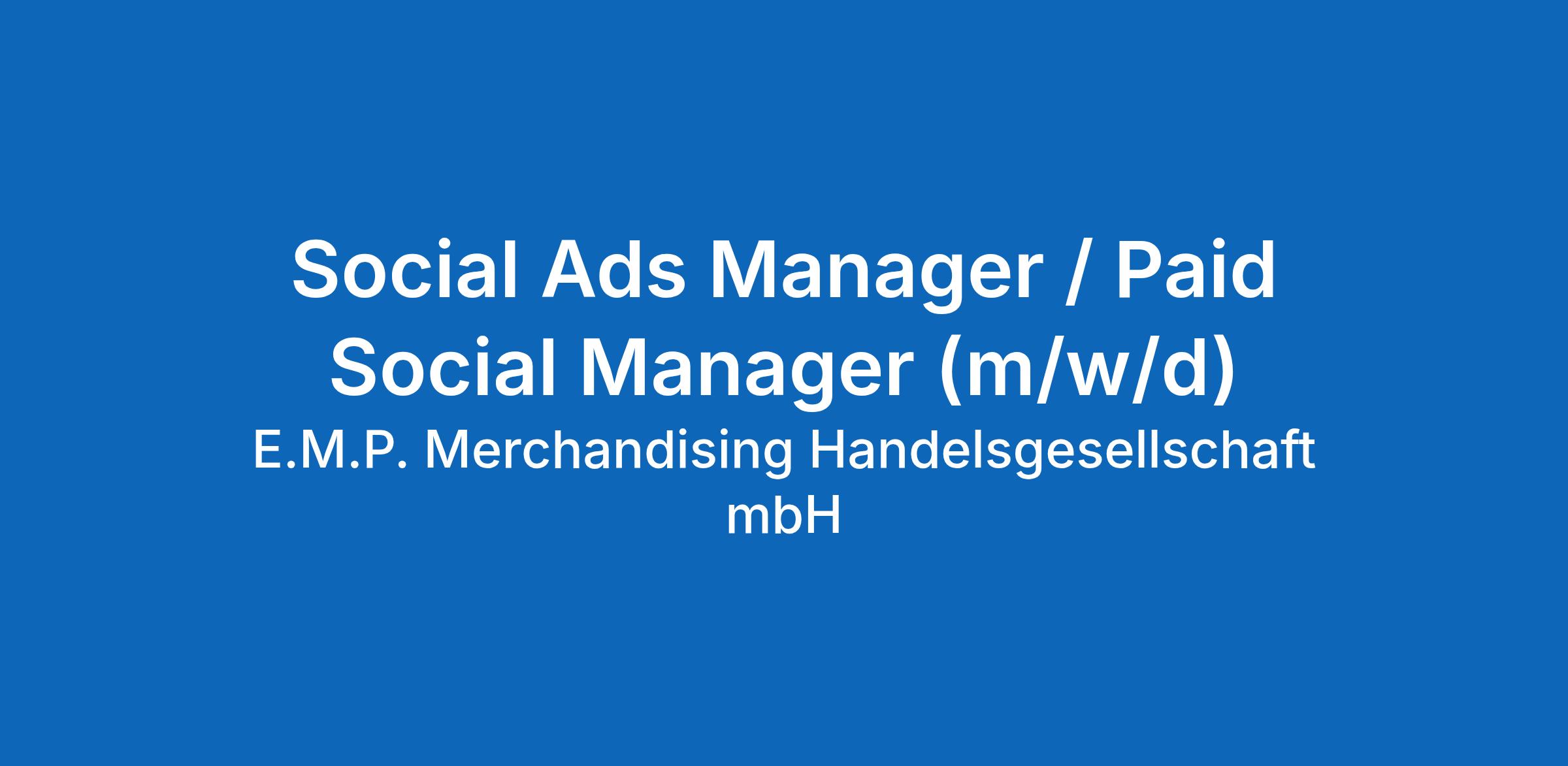Social Ads Manager / Paid Social Manager (m/w/d)