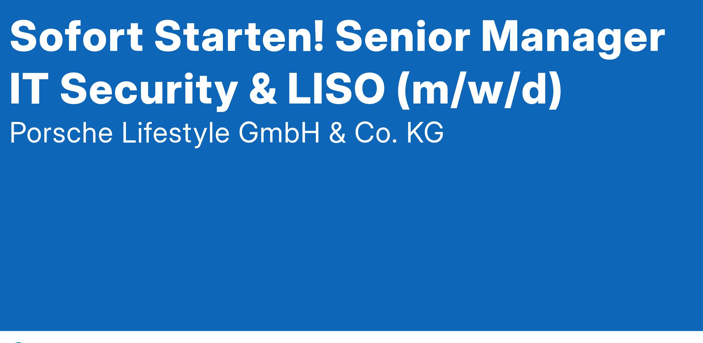 Sofort Starten! Senior Manager IT Security & LISO (m/w/d)