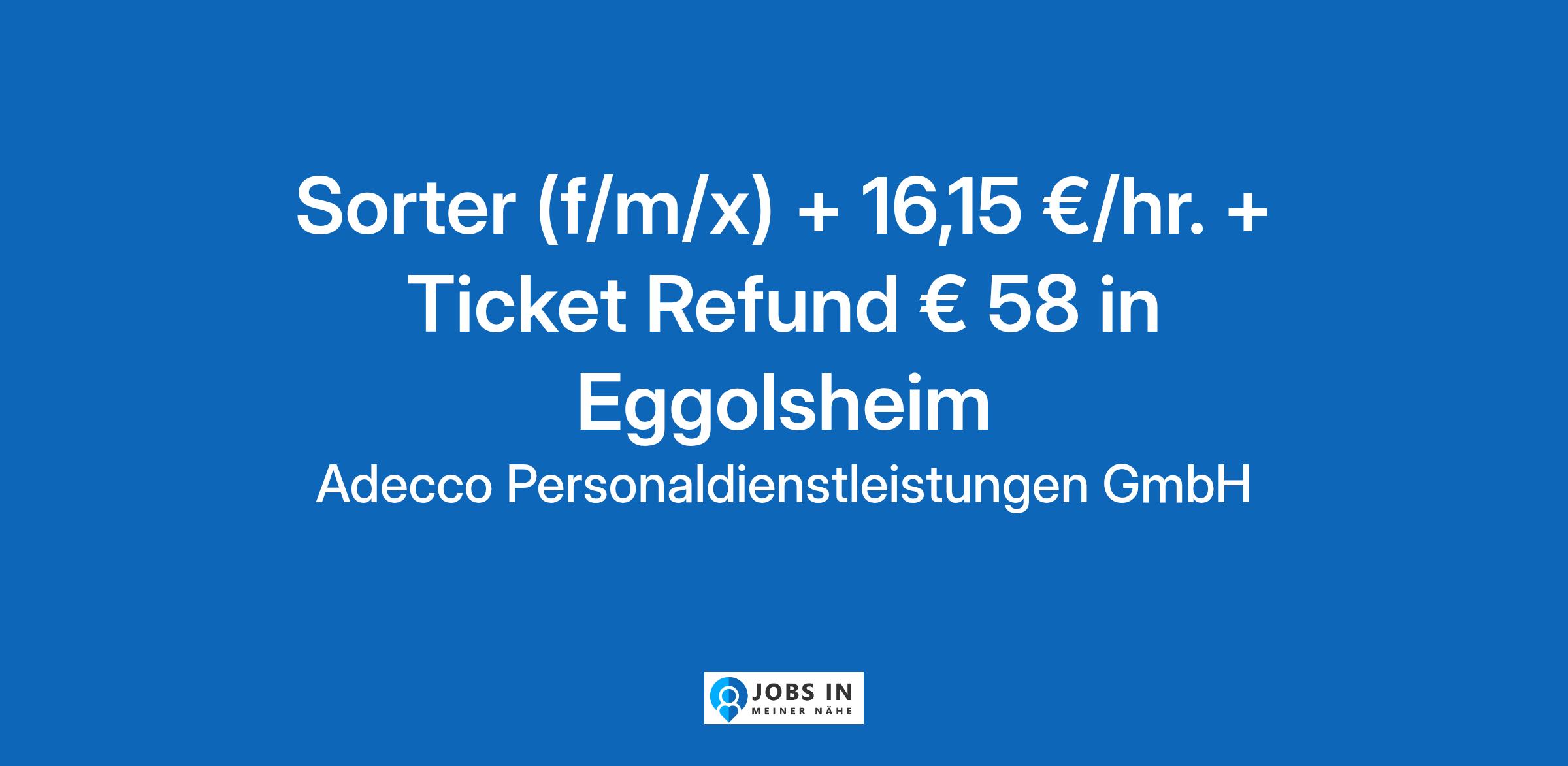 Sorter (f/m/x) + 16,15 €/hr. + Ticket Refund € 58 in Eggolsheim