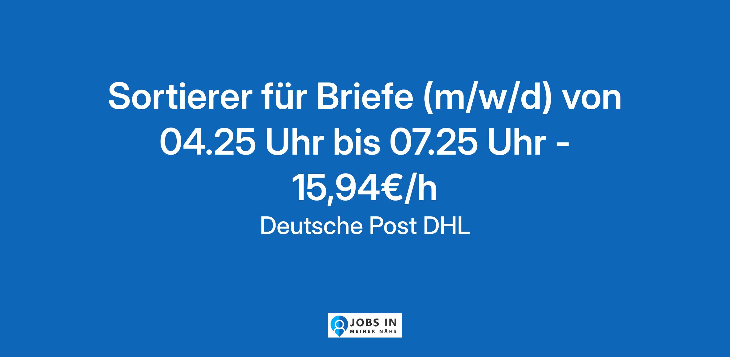 Als Briefsortierer im Unternehmensbereich Post & Paket Deutschland von Deutsche Post DHL sorgst du dafür, dass unsere Briefe pünktlich ankommen. Bei uns sind auch Quereinsteiger oder Studenten herzlich willkommen, denn du zählst, wie du bist!