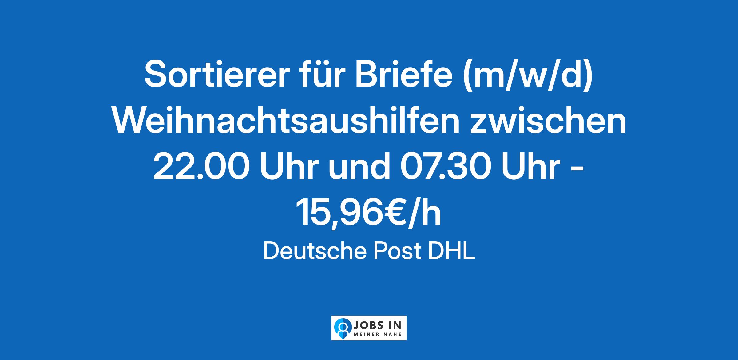 Du bist auf der Suche nach einem Job als Sortierer ? Als Briefsortierer im Unternehmensbereich Post & Paket Deutschland von Deutsche Post DHL sorgst du dafür, dass unsere Briefe pünktlich ankommen!