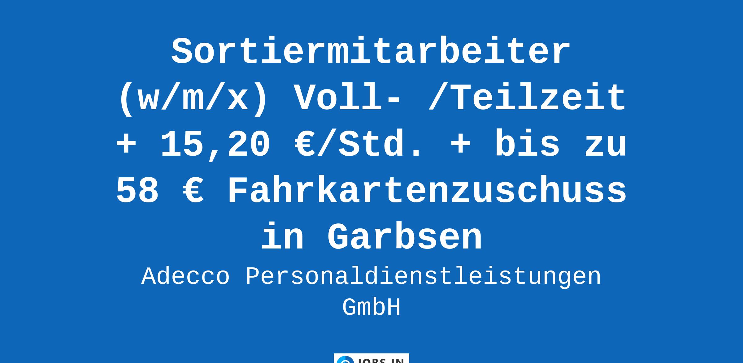 Sortiermitarbeiter (w/m/x) Voll- /Teilzeit + 15,20 €/Std. + bis zu 58 € Fahrkartenzuschuss in Garbsen