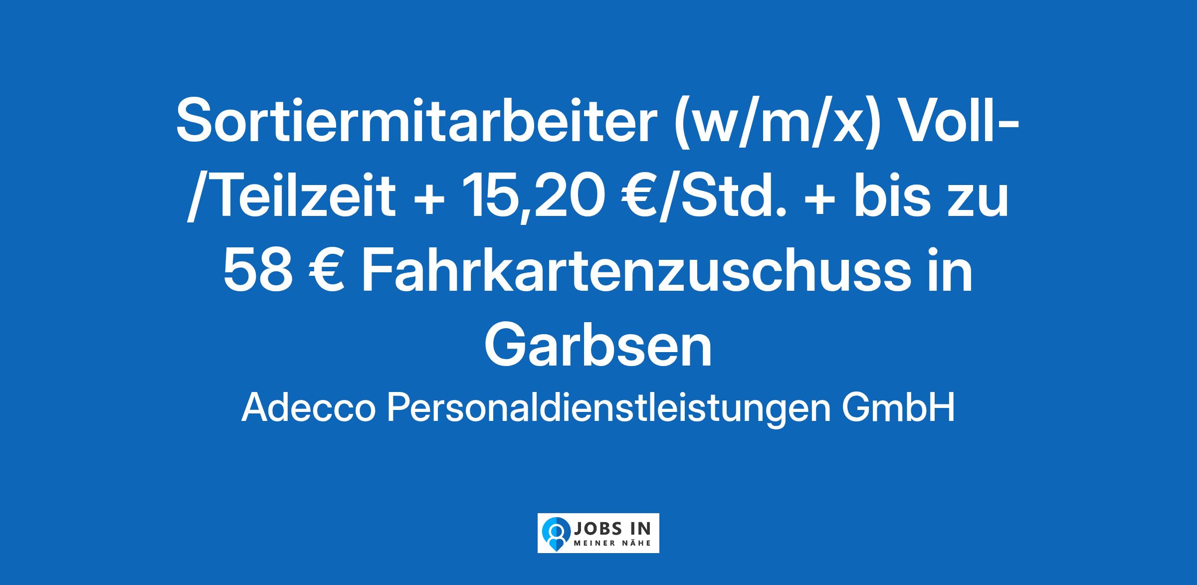 Sortiermitarbeiter (w/m/x) Voll- /Teilzeit + 15,20 €/Std. + bis zu 58 € Fahrkartenzuschuss in Garbsen