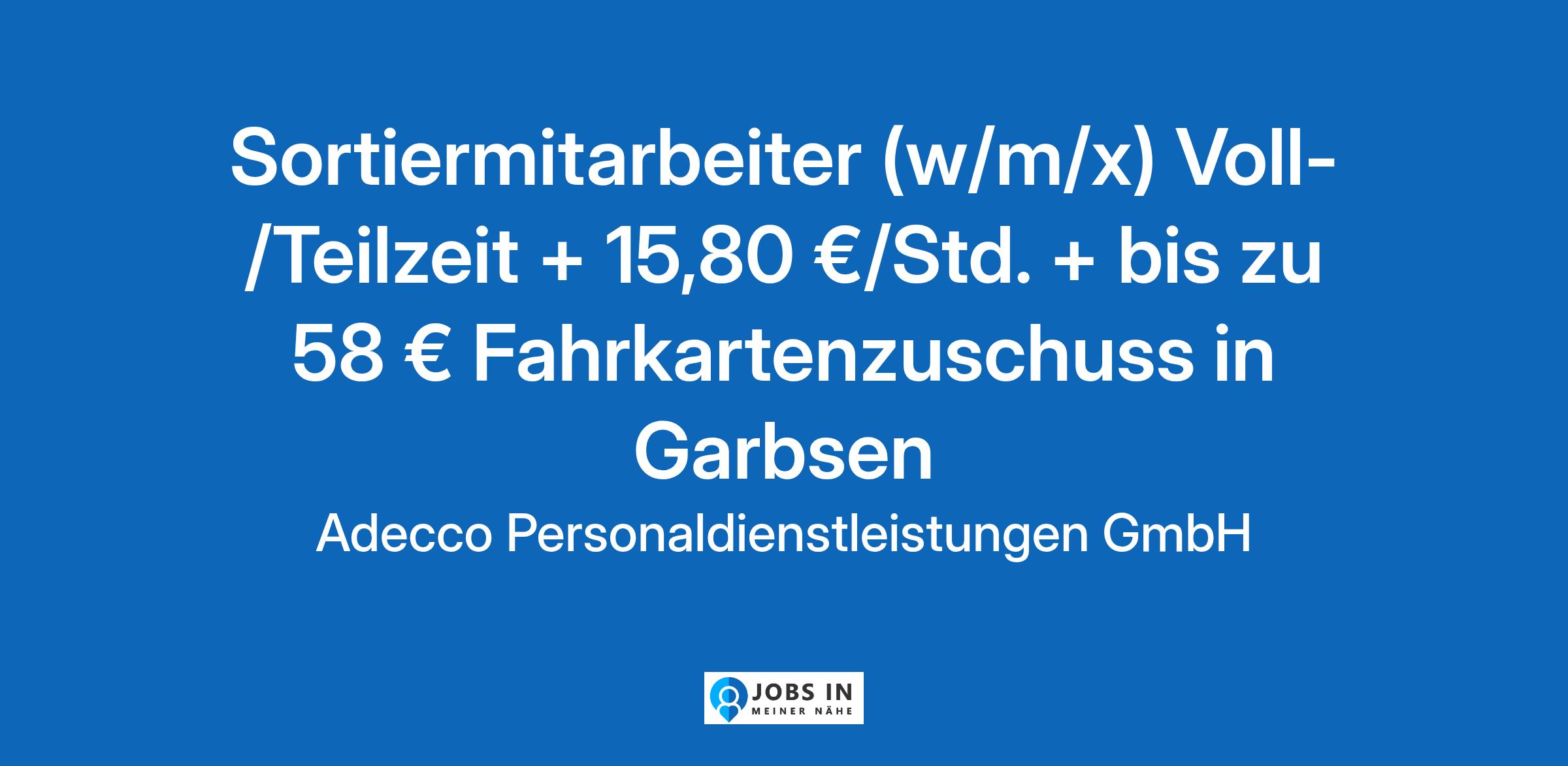 Sortiermitarbeiter (w/m/x) Voll- /Teilzeit + 15,80 €/Std. + bis zu 58 € Fahrkartenzuschuss in Garbsen