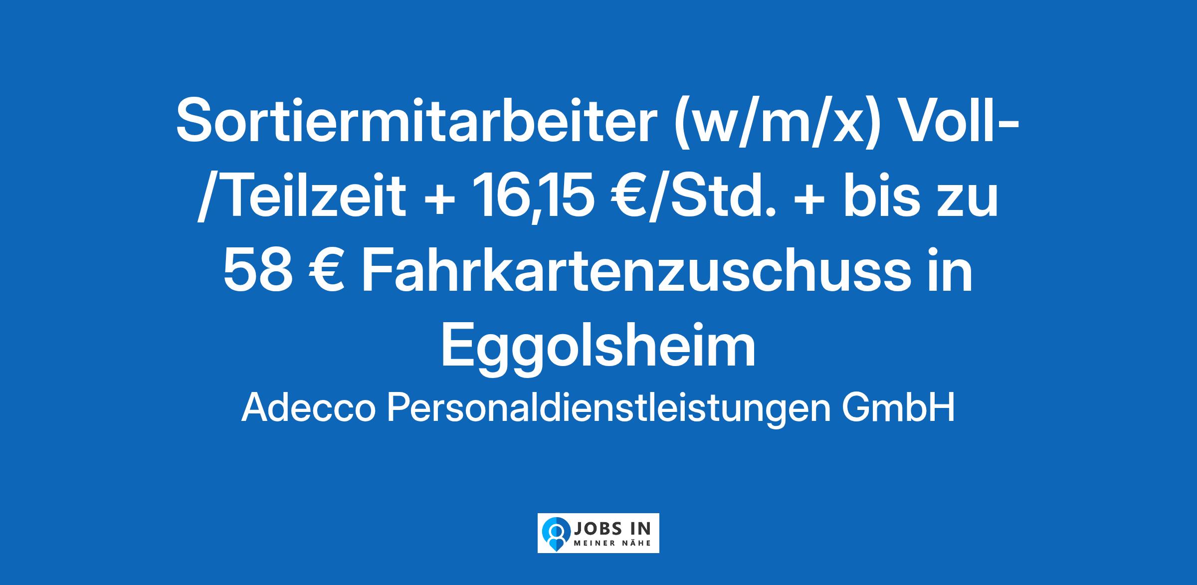 Sortiermitarbeiter (w/m/x) Voll- /Teilzeit + 16,15 €/Std. + bis zu 58 € Fahrkartenzuschuss in Eggolsheim