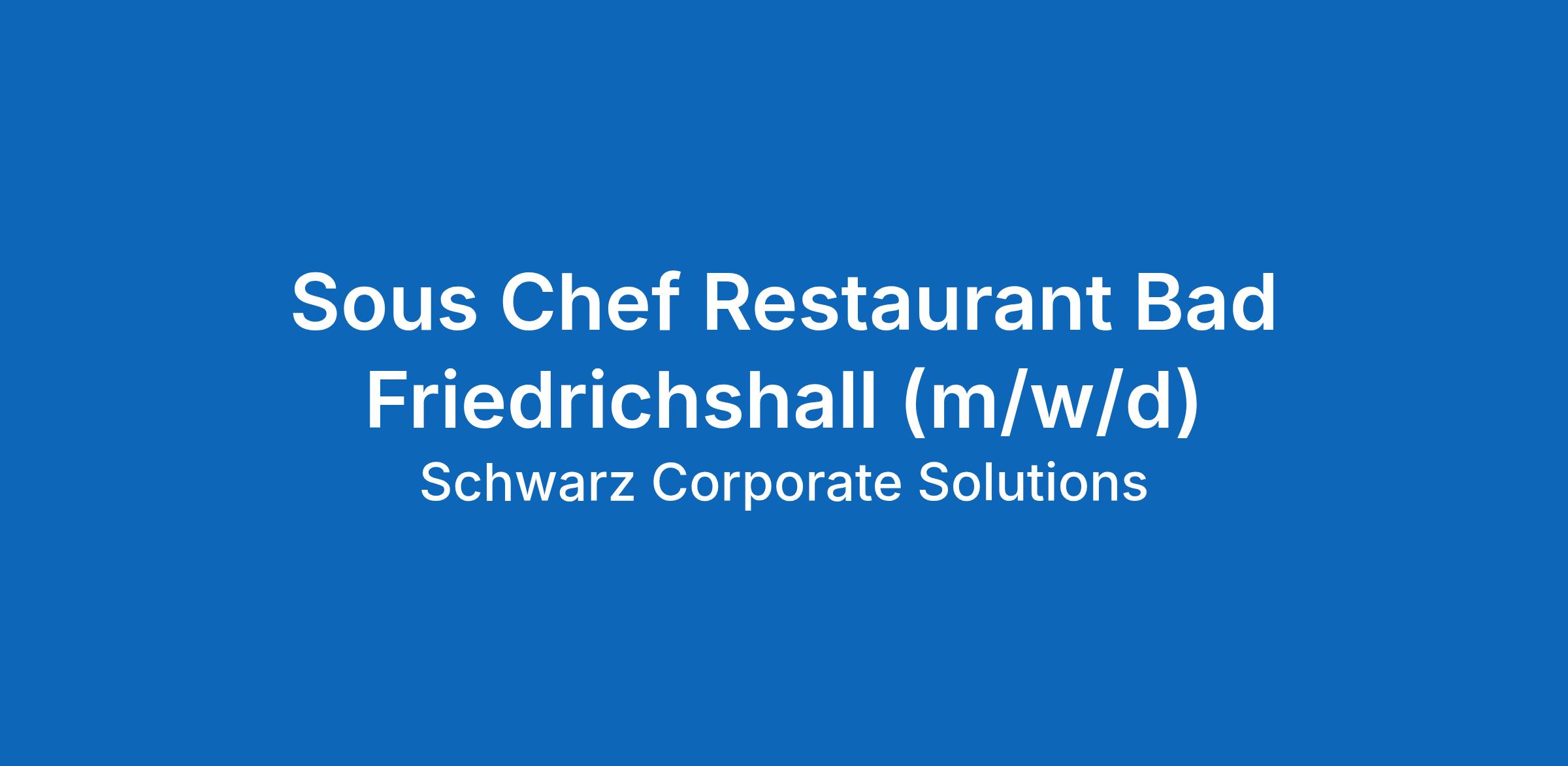 Sous Chef Restaurant Bad Friedrichshall