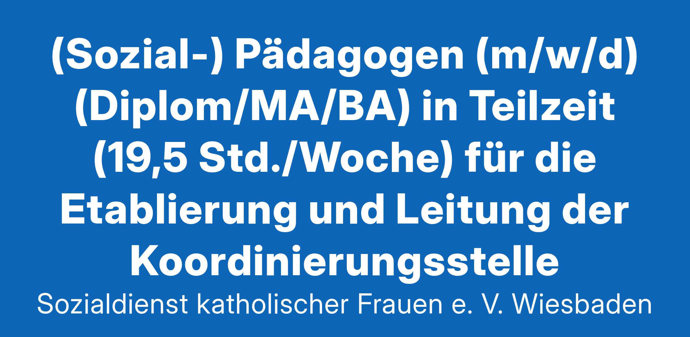 Der Sozialdienst katholischer Frauen e. V. Wiesbaden (SkF) ist ein Fachverband in der katholischen Kirche, der sich für Frauen, Kinder, Jugendliche und Familien einsetzt, die in ihrer aktuellen Lebenssituation auf Beratung und Hilfe angewiesen sind. Wir suchen ab sofort (spätestens jedoch zum 1.3.2025) zunächst befristet bis zum 31.12.2025 eine/n (Sozial-) Pädagogen (m/w/d) (Diplom/MA/BA) in Teilzeit (19,5 Std./Woche) für die Etablierung und Leitung der Koordinierungsstelle „Betreuung und Versorgung des Kindes in Notsituationen“ (KoKiNo) nach §20 SGB VIII.Das sind Ihre Aufgaben: Etablierung, Koordination und Organisation des Angebots Begleitung der betroffenen Familien: Bedarfsklärung, Koordination des Einsatzes, Klärung der Finanzierung, Beratung oder Weitervermittlung an andere Einrichtungen Organisation weiterer Hilfen und Unterstützungsmaßnahmen im pädagogischen, pflegerischen und psychosozialen Bereich, Aufrechterhaltung der Haushaltsführung Dokumentation, Evaluation und Weiterentwicklung des Konzepts Beteiligung ehrenamtlicher Personen (d.h. deren Akquise, Qualifizierung und Begleitung sowie Praxisreflexion/Supervision) Vernetzungs- und Multiplikatorenarbeit / Kooperationen mit Fachkolleg:innen des Verbands, mit der Bezirkssozialarbeit sowie mit anderen sozialen Diensten in der LH Wiesbaden Mitwirkung bei der Öffentlichkeitsarbeit (Flyer, Homepage, Social-Media, Pressemitteilungen) Das bringen Sie mit: Sie haben ein Studium der (Sozial-) Pädagogik oder einer vergleichbaren Fachrichtung erfolgreich abgeschlossen und bringen Berufserfahrung mit. Sie verfügen über ausgeprägte Fach-, Methoden- und Sozialkompetenz (z. B. über Kenntnisse zu den Rechtsgrundlagen der sozialen Leistungen in Kern- und Grenzbereichen sowie Kenntnisse über die Angebotspalette sozialer Einrichtungen in der LH Wiesbaden). Netzwerkarbeit und Qualitätsmanagement sind Ihnen wichtig. Sie arbeiten selbstständig und organisiert in komplexen Umfeldern und haben Spaß am vernetzten Arbeiten und der Zusammenarbeit mit anderen Professionen. Sie sind flexibel, empathisch, kommunikations- und konfliktfähig. Sie gehen sicher mit MS Office Anwendungen um. Sie sind Mitglied in einer christlichen Kirche und identifizieren sich mit deren Werten. Das bieten wir Ihnen: Flexible, auf Ihre Bedürfnisse abgestimmte Arbeitszeiten Kollegiales Klima in einem motivierten, eigenständigen Team Ausführliche und praxisorientierte Einarbeitung Leistungsgerechte Vergütung nach TVÖD VKA (inkl. Leistungsentgelt und Jahressonderzahlung) Freistellung und teilweise Kostenübernahme für regelmäßige Fort- und Weiterbildungen Arbeitgeberfinanzierte Altersversorgung bei einer Eigenbeteiligung von nur 0,4% KontaktWenn Sie sich mit der Aufgabenstellung identifizieren können und wir Ihr Interesse geweckt haben, dann freuen wir uns auf Ihre Bewerbung (kurzes Anschreiben, Lebenslauf, Zeugnisse). Schwerbehinderte Menschen werden bei gleicher Eignung bevorzugt berücksichtigt. Bitte nehmen Sie Kontakt mit mir auf: Sozialdienst katholischer Frauen e. V. Wiesbaden, Dr. Marina Schmitt (Geschäftsführerin), Platter Str. 80, 65193 Wiesbaden, Tel.: 0611/95287-13, Mail: dr.marina.schmitt@skf-wiesbaden.de; www.skf-wiesbaden.de