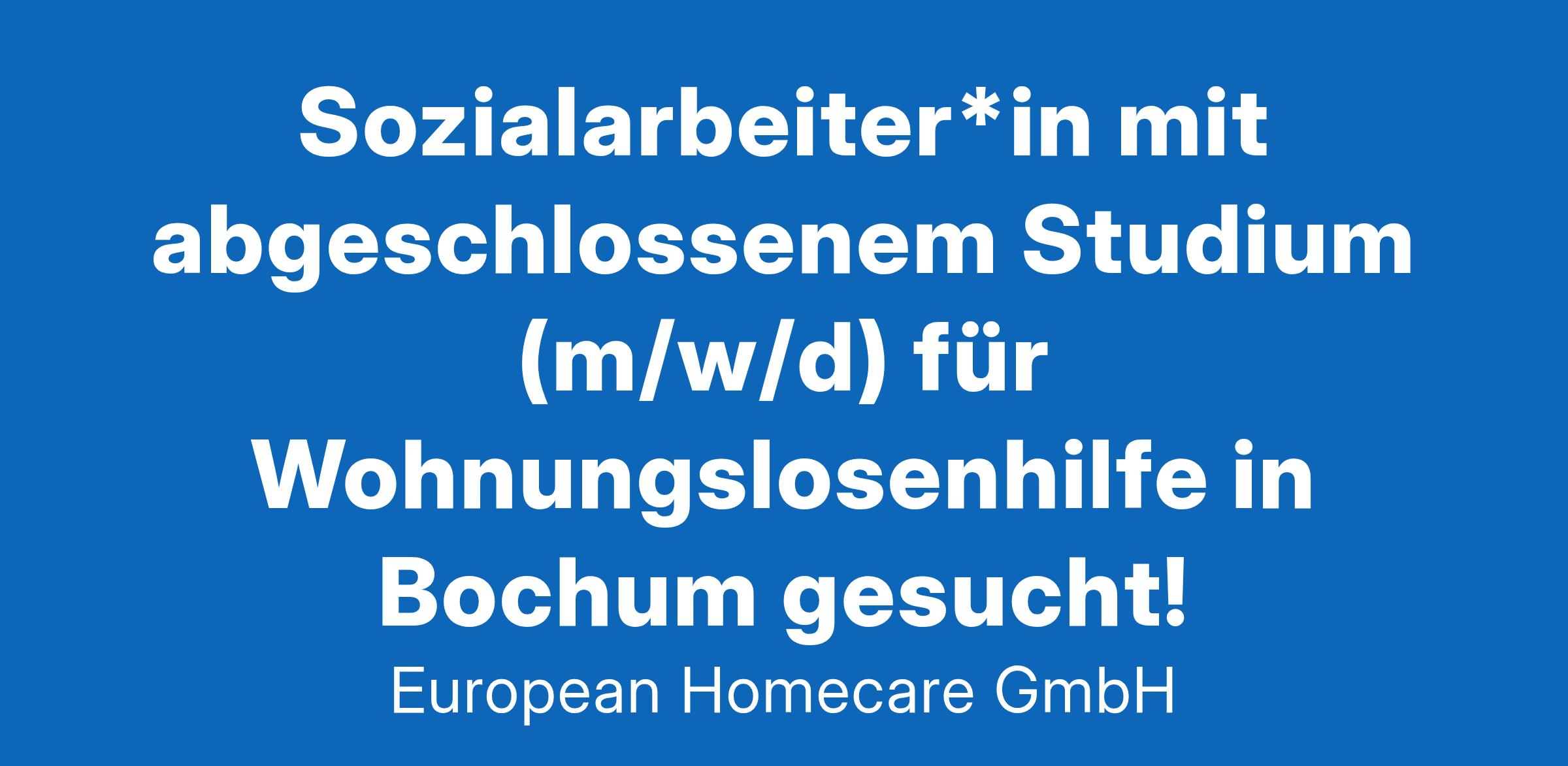 Sozialarbeiter*in mit abgeschlossenem Studium (m/w/d) für Wohnungslosenhilfe in Bochum gesucht!