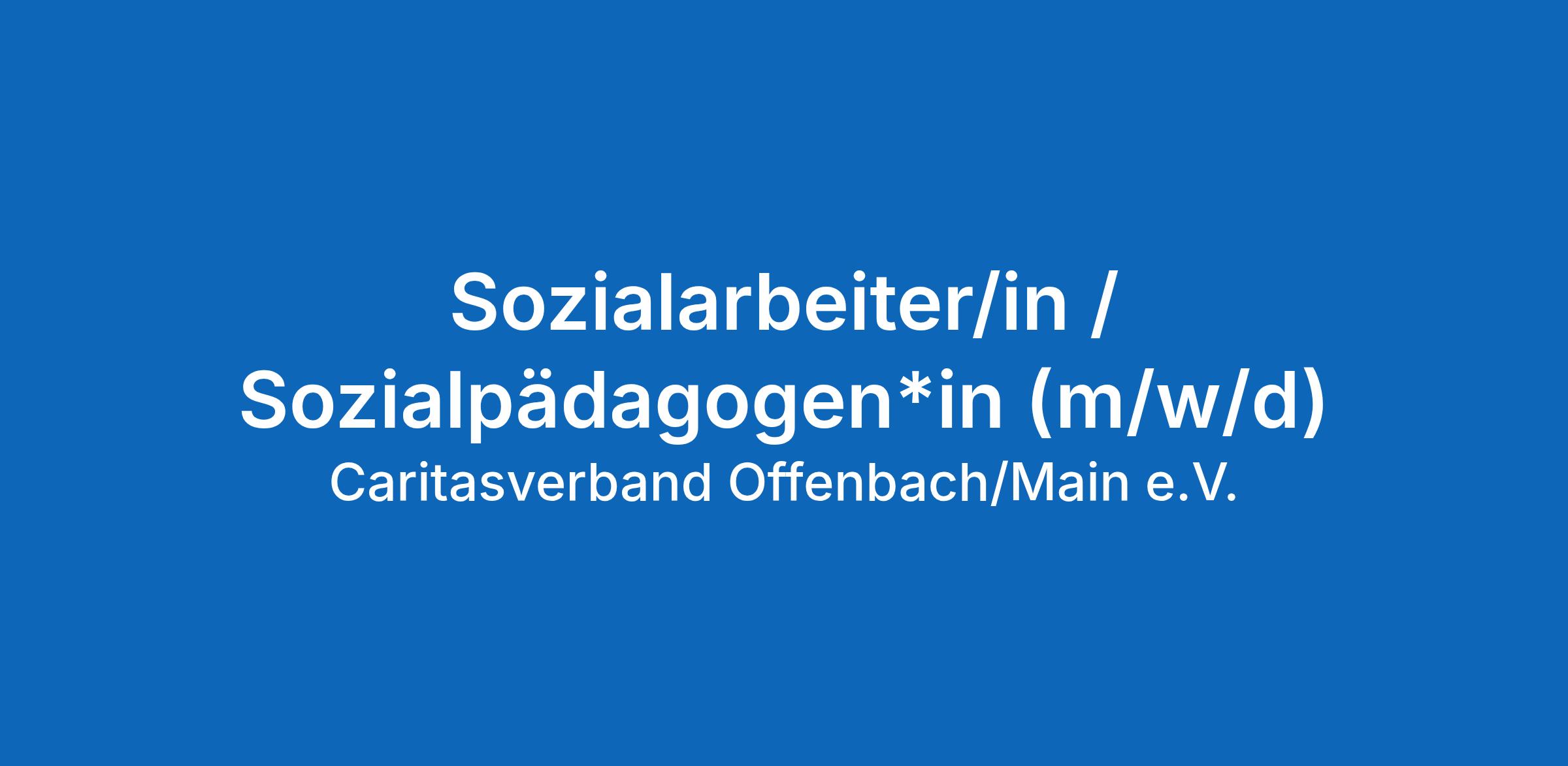 Der Caritasverband Offenbach/Main e.V. sucht eine/n