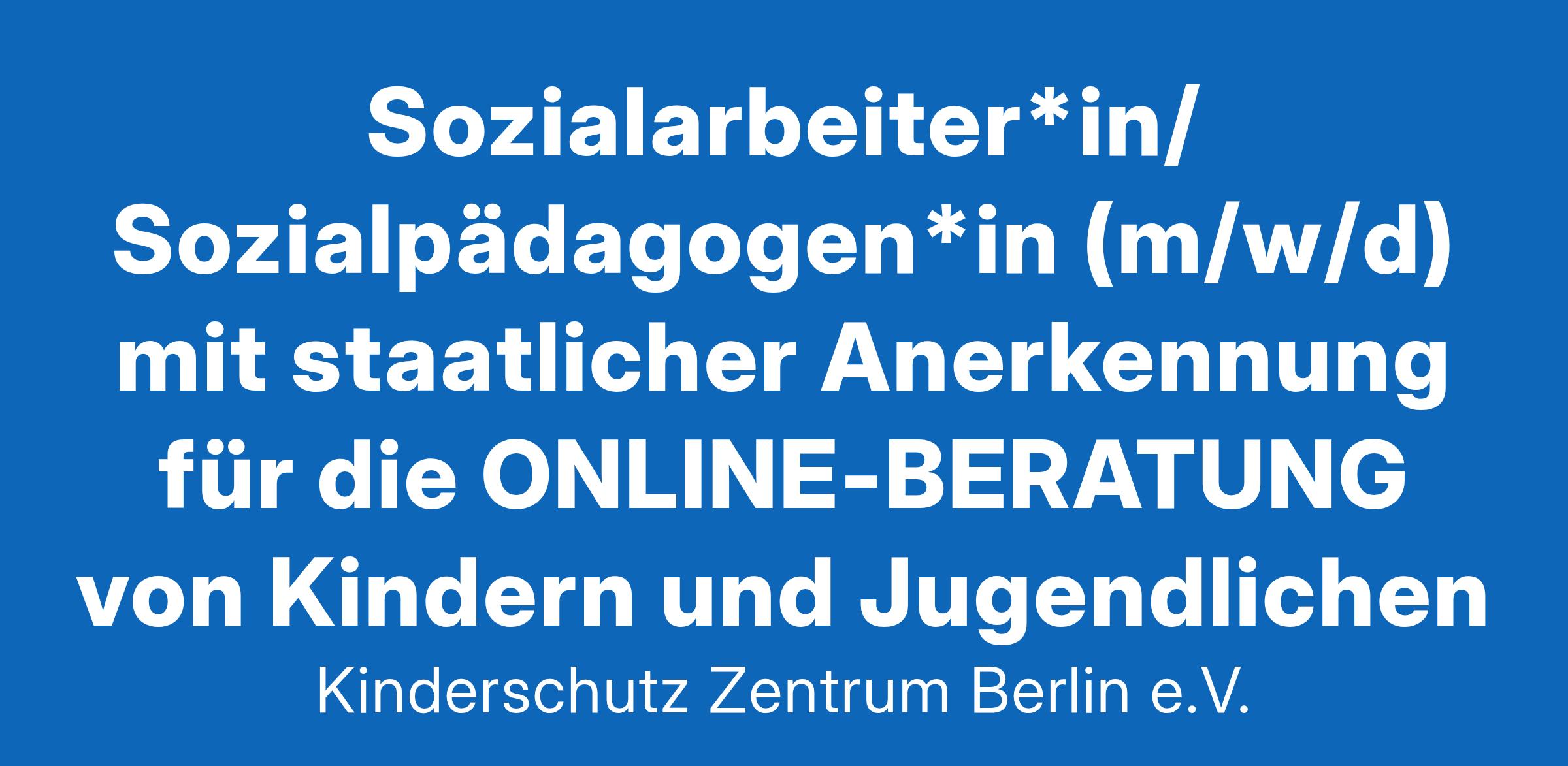 Der Verein Kinderschutz-Zentrum Berlin e.V. ist ein selbstverwalteter, freier und gemeinnütziger Träger mit rund 30 Angestellten in zwei ambulanten Beratungsstellen und einem stationären Bereich. Seit 2018 hat das Kinderschutz-Zentrum zu seinen bisherigen Beratungs- und Therapieangeboten mit dem Angebot der Online-Beratung jugendnotmail.berlin Kindern und Jugendlichen einen niedrigschwelligen Zugang zu Hilfen eröffnet. Dieses Projekt findet in Kooperation mit einem anderen Jugendhilfeträger statt. Hierfür suchen wir in der Beratungsstelle Neukölln zum 01.04.2025 eine*n Sozialarbeiter*in/ Sozialpädagogen*in (m/w/d) mit staatlicher Anerkennung