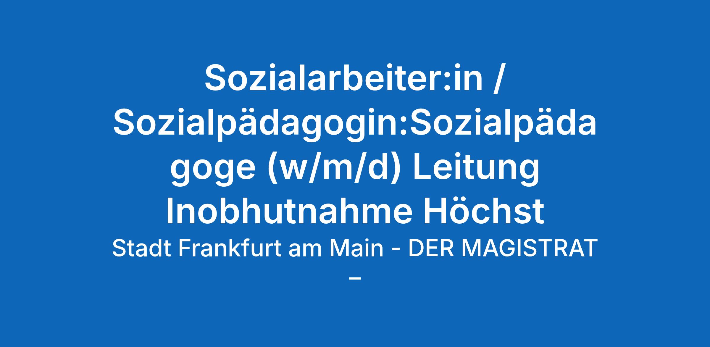 Sozialarbeiter:in / Sozialpädagogin:Sozialpädagoge (w/m/d) Leitung Inobhutnahme Höchst