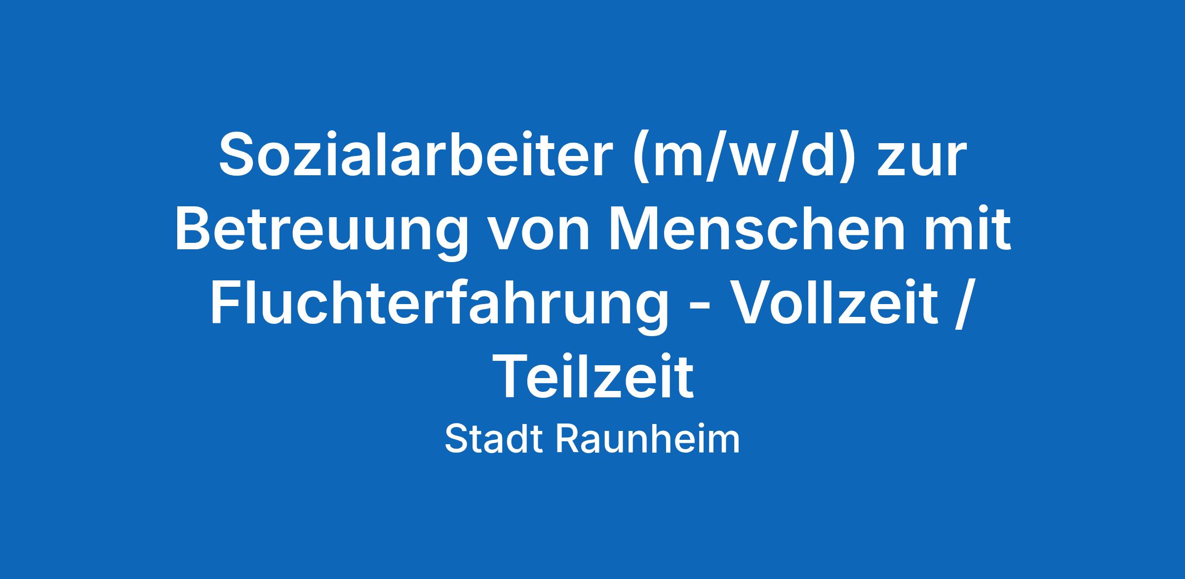 Sozialarbeiter (m/w/d) zur Betreuung von Menschen mit Fluchterfahrung