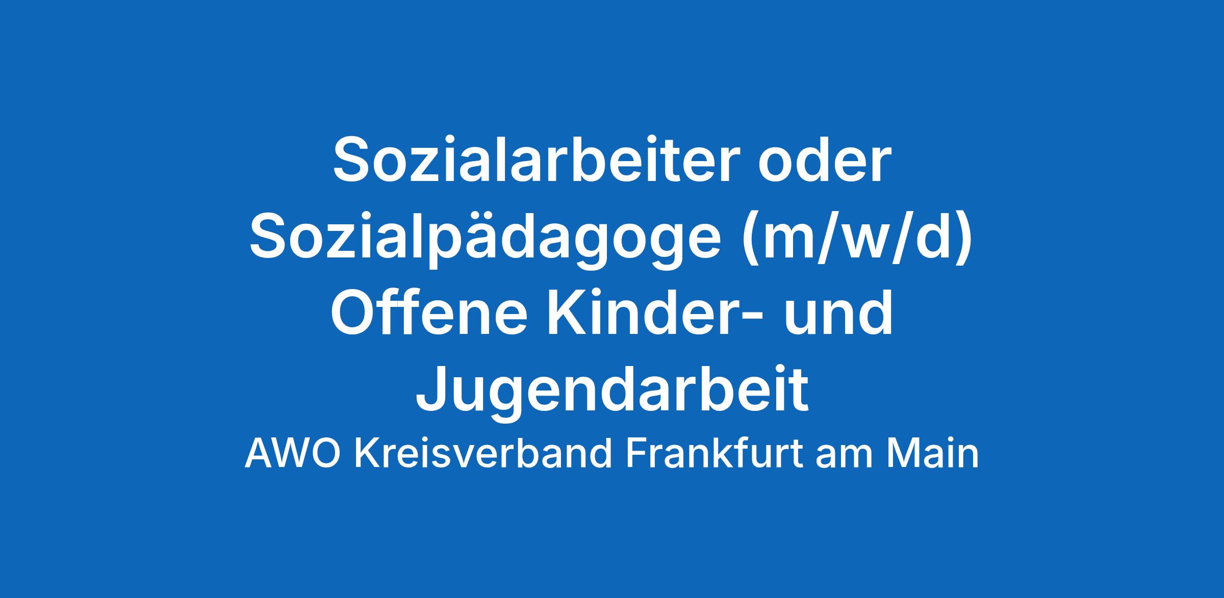 Solidarisch für Menschen – seit über einem Jahrhundert. Wir sind der AWO Kreisverband Frankfurt am Main e. V. und helfen Menschen – ohne Wenn und Aber. Als einer der größten Anbieter für soziale Dienstleistungen in der Mainmetropole betreiben wir diverse Kinder- und Jugendeinrichtungen und setzen uns darüber hinaus in der ambulanten und stationären Pflege ein. Die Arbeit unserer 500 Ehrenamtlichen und ca. 1.200 Kollegen (m/w/d) ist geprägt von einem herzlichen Betriebsklima, vorbehaltloser Akzeptanz sowie der bedingungslosen Unterstützung füreinander. Wir arbeiten nicht nur für die gute Sache, sondern auch zu attraktiven Bedingungen.