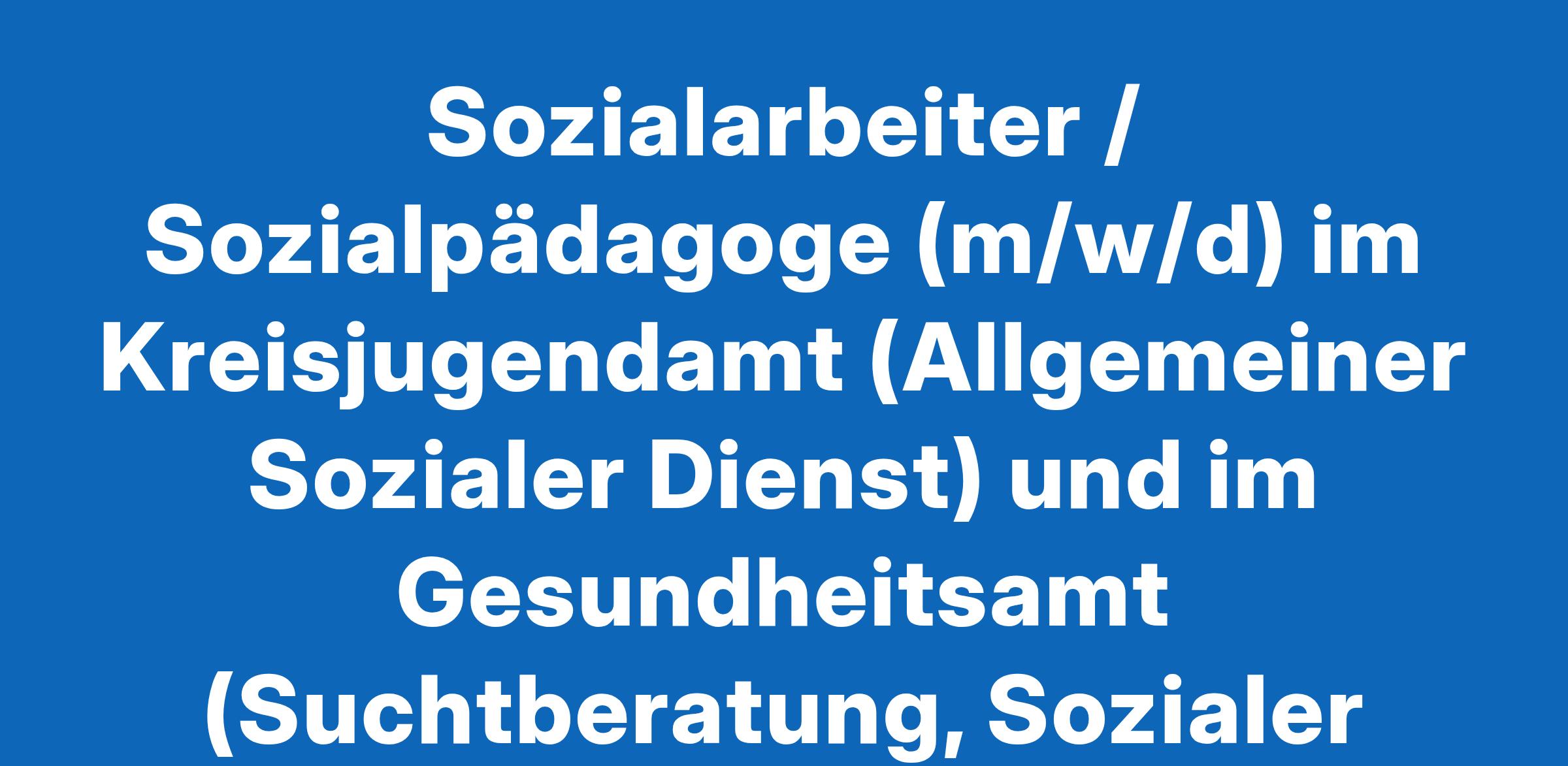 Sozialarbeiter / Sozialpädagoge (m/w/d) im Kreisjugendamt (Allgemeiner Sozialer Dienst) und im Gesundheitsamt (Suchtberatung, Sozialer Dienst)