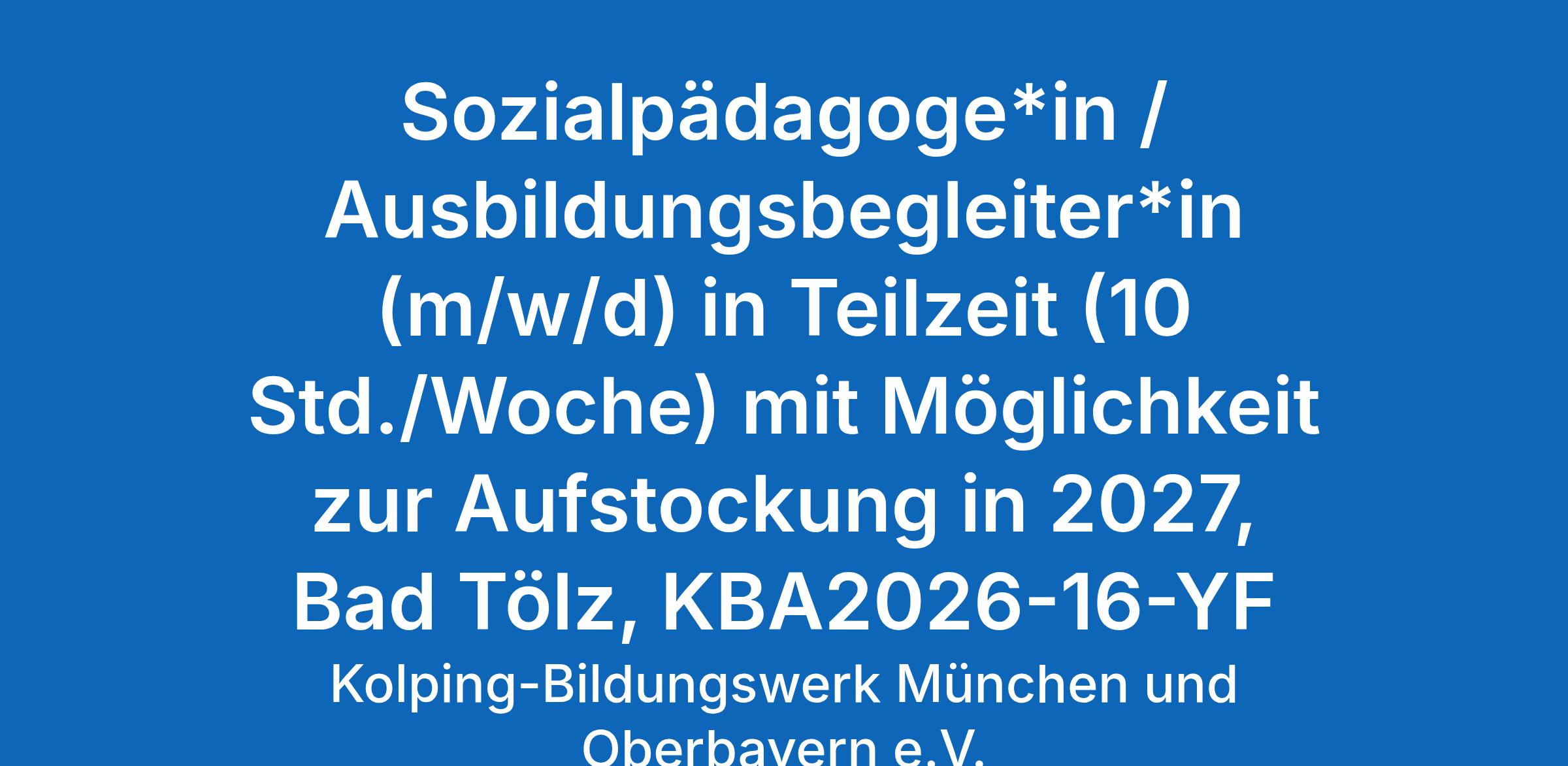 Für den Einsatz in unseren Maßnahmen der Ausbildungsunterstützung suchen wir für den Standort Bad Tölz ab sofort eine*n