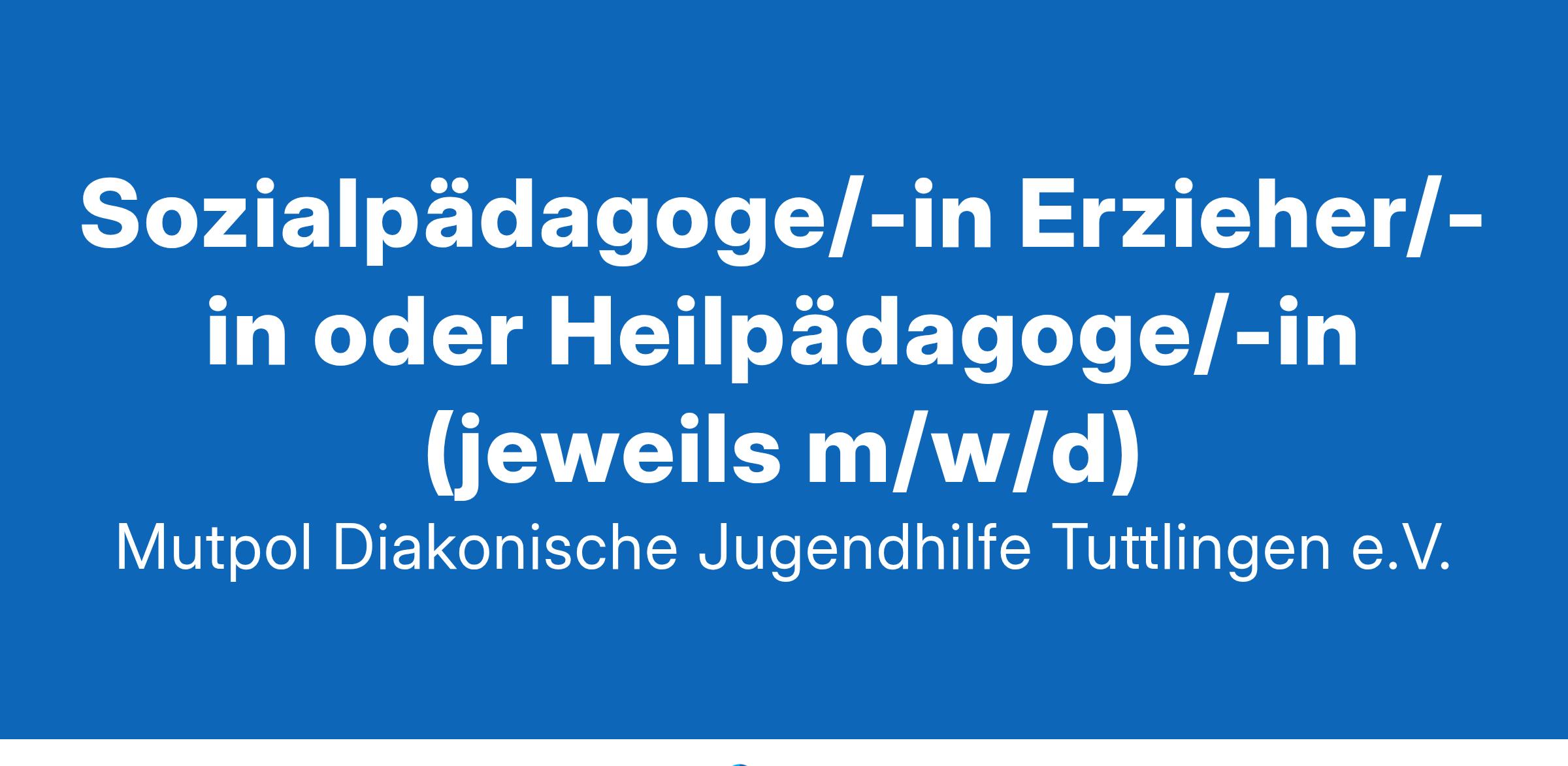 Sie suchen eine neue Herausforderung im pädagogischen Bereich und einen zuverlässigen, modernen und innovativen Arbeitgeber in der Jugendhilfe? Tuttlingen liegt in einer landschaftlich sehr interessanten Region an der Oberen Donau. Bodensee und Schwarzwald sind in unmittelbarer Nähe. Wir suchen aktuell und perspektivisch für eine Innen- und eine Außenwohngruppe: Sozialpädagoge/-in Erzieher/-in oder Heilpädagoge/-in (jeweils m/w/d) Unsere Tätigkeitsbereiche: Sonderpädagogisches Beratungs- und Bildungszentrum mit dem Förderschwerpunkt emotionale und soziale Entwicklung Wohngruppen, Intensivwohngruppen, Intensivwohngruppen für autistische und traumatisierte junge Menschen, Inobhutnahmen, Tagesgruppen, UMA, u.v.m. Ambulante Hilfen wie SPFH und Erziehungsbeistandschaft, Schulsozialarbeit, Offene Jugendarbeit, Grundbetreuung Intensive sozialpädagogische Einzelfallhilfen Unser Angebot: Sehr gute Arbeitsbedingungen und Infrastruktur, moderne IT Bezahlung nach AVR-TVÖD Diverse Benefits wie Jobrad, Hansefit, interne und externe Fortbildungsmöglichkeiten (bspw. Systemisches Arbeiten, Traumapädagogik) Fallberatung durch eigenen Fachdienst und Supervision, Ausbildung in Deeskalationsmanagement Gute Beteiligungsstrukturen für Jugendliche und Mitarbeitende Weitere Informationen über aktuell zu besetzende Stellen erfahren Sie über unsere Homepage. Wir freuen uns auf Ihre Bewerbung: Mutpol, Diakonische Jugendhilfe Tuttlingen e.V. | Im Steinigen Tal 10/1 | 78532 Tuttlingen www.mutpol.de | 07461/17060 | info@mutpol.de Oder Ihre Direktbewerbung unter: https://www.karriere-mutpol.de
