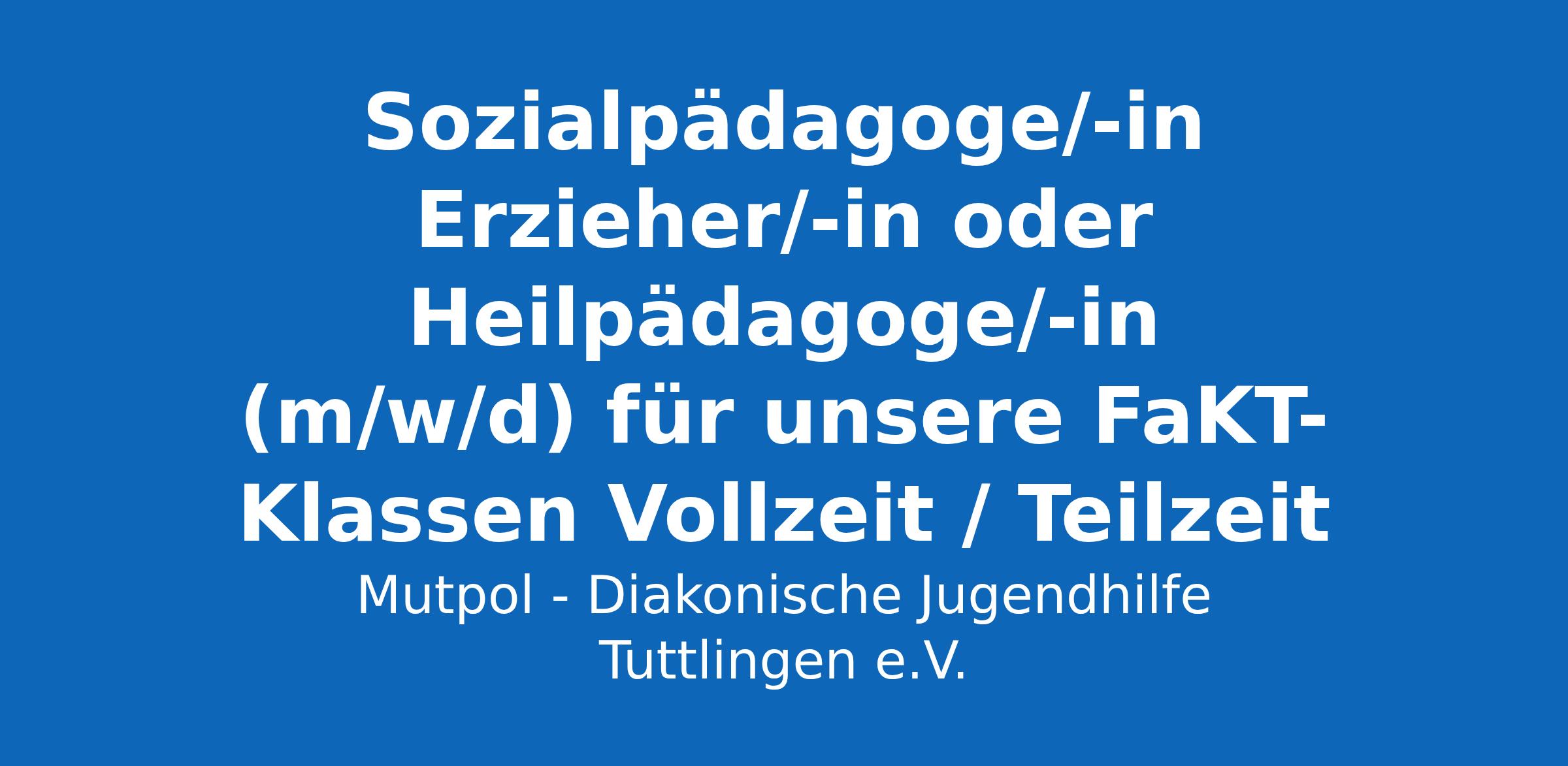 Sozialpädagoge/-in Erzieher/-in oder Heilpädagoge/-in (m/w/d) für unsere FaKT-Klassen Vollzeit / Teilzeit