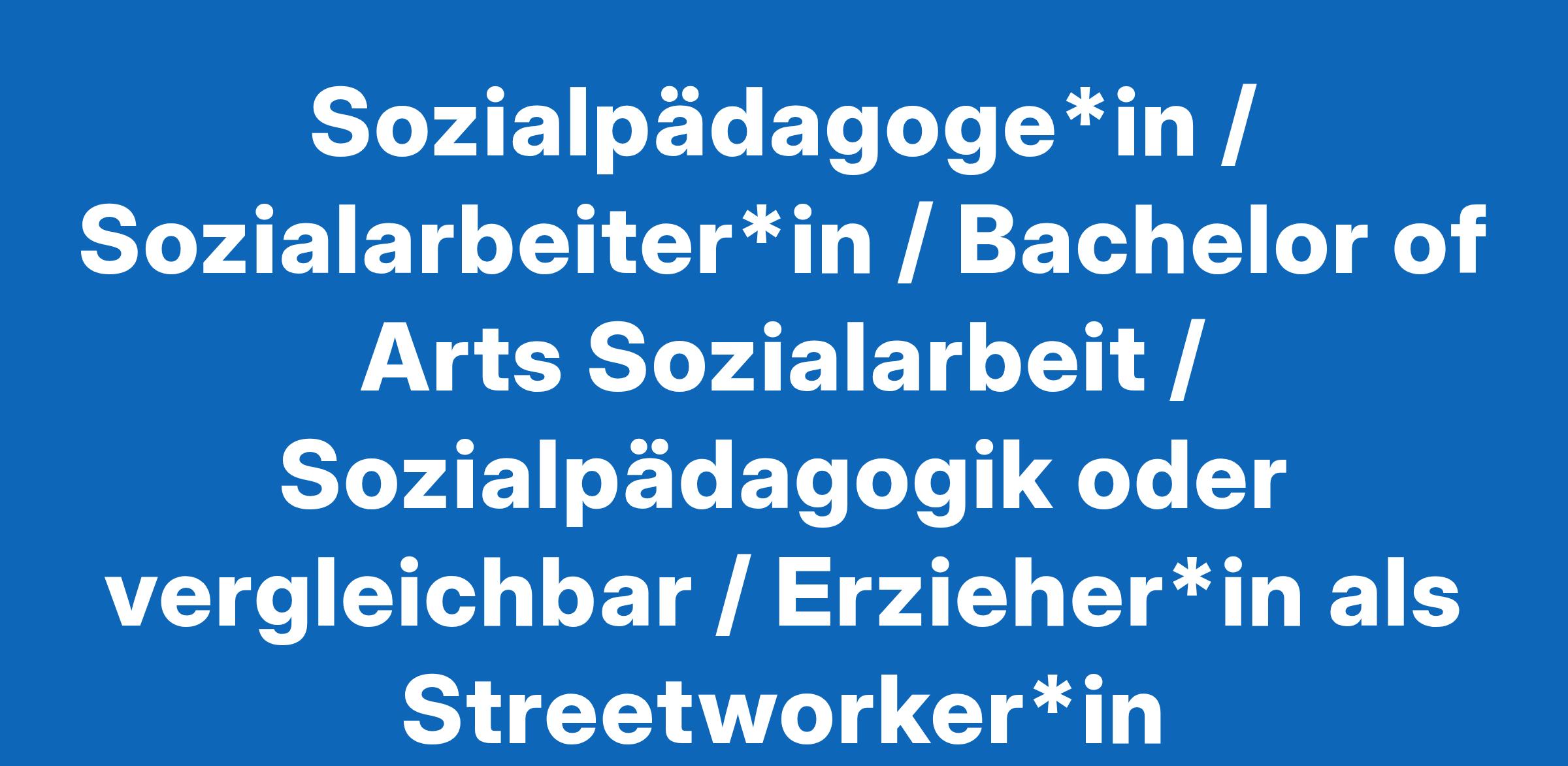Sozialpädagoge*in / Sozialarbeiter*in / Bachelor of Arts Sozialarbeit / Sozialpädagogik oder vergleichbar / Erzieher*in als Streetworker*in