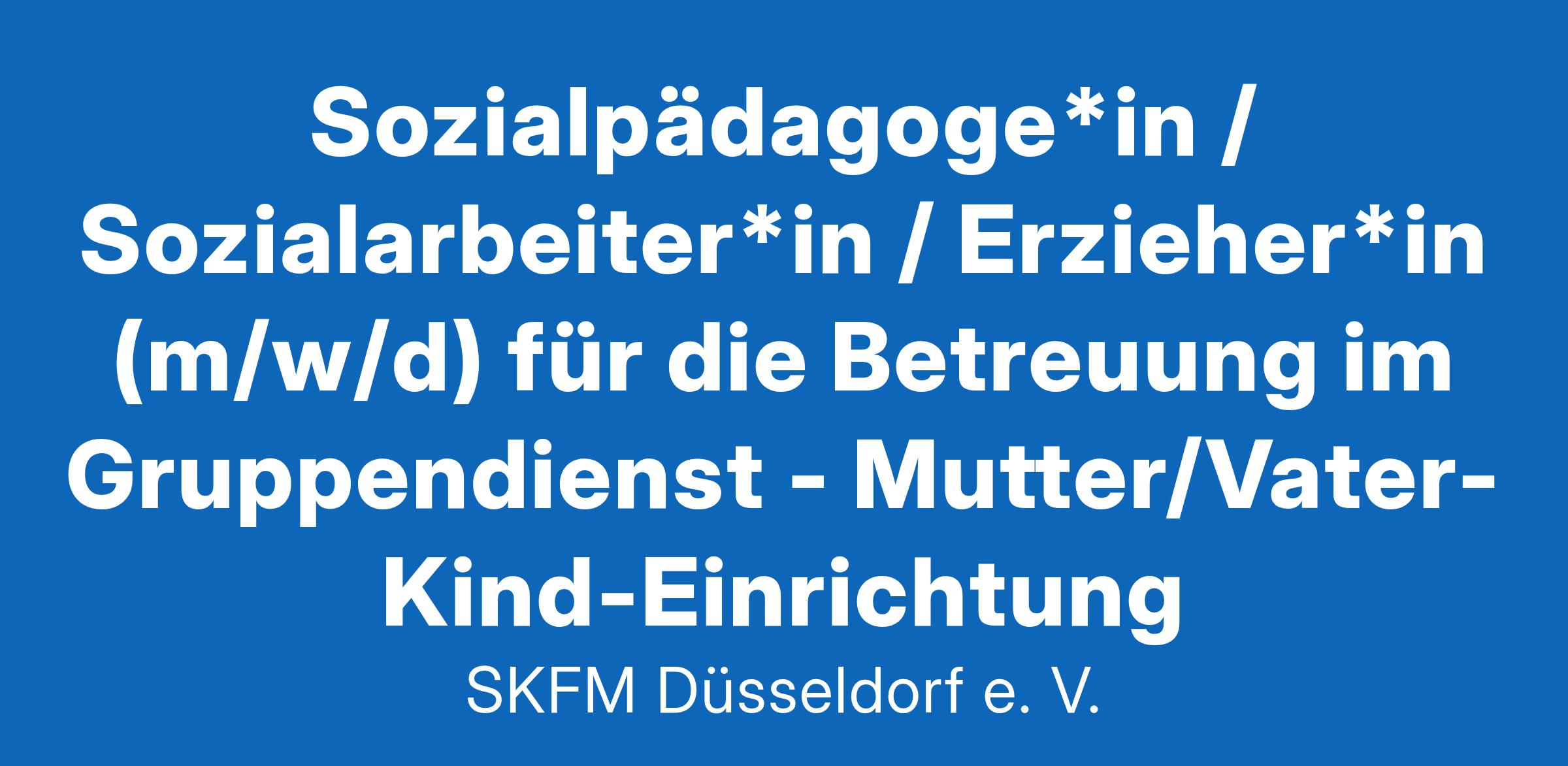 Sozialpädagoge*in / Sozialarbeiter*in / Erzieher*in (m/w/d) für die Betreuung im Gruppendienst - Mutter/Vater-Kind-Einrichtung ... damit Leben gelingt – der Sozialdienst katholischer Frauen und Männer Düsseldorf e.V. ist seit 1903 in der sozialen Arbeit tätig. In seinen Diensten und Einrichtungen engagieren sich hauptamtlich und ehrenamtlich Mitarbeitende für Kinder, Jugendliche, Familien und Menschen in sozialen, psychischen und wirtschaftlichen Notlagen. Ab 01. Mai 2025 suchen wir für unsere für unsere Mutter/Vater-Kind-Einrichtung in Düsseldorf-Derendorf - ein Angebot der Jugendhilfe gemäß § 19 SGB VIII - eine(n) Sozialpädagoge*in / Sozialarbeiter*in / Erzieher*in (m/w/d) (staatliche Anerkennung als Erzieher*in, B.A. Soziale Arbeit, B.A. Kindheitspädagogik oder vergleichbar) für die Betreuung im Gruppendienst. Es handelt sich um eine unbefristete Vollzeitstelle mit einem Umfang von 39 Wochenstunden. Wir wünschen uns: entsprechende pädagogische Ausbildung, gerne auch mit systemischer Zusatzausbildung offene und positive pädagogische Grundhaltung Erfahrung in der Gestaltung pädagogischer Prozesse Team- und Kooperationsfähigkeit zeitliche und inhaltliche Flexibilität Empathie und ressourcenorientierte Denkweise Bereitschaft zur Arbeit im Schichtdienst (keine Nächte) Identifikation mit Zielen und Wertorientierung eines katholischen Fachverbandes Wir bieten: Mitarbeit in einem engagierten und kompetenten Team Verantwortungsvolle und vielseitige Tätigkeit Flexible Arbeitszeitgestaltung Fachliche Entwicklungs- und Gestaltungsmöglichkeiten, Supervision, Fortbildung Leistungsgerechte Vergütung und Urlaub gemäß AVR mit Zusatzversorgung, ggf. tarifliche Zulagen Ein vergünstigtes Deutschlandticket und ein Dienstfahrrad-Angebot Ansprechpartnerin für nähere Informationen: Fachbereichsleitung Erzieherische Hilfen: Jutta Ferlings, Telefon: 0157 737 4696 3 Ihre vollständigen Bewerbungsunterlagen richten Sie bitte an: bewerbungen@skfm-duesseldorf.de Stichwort: "MuKi" SKFM Düsseldorf e.V. Ulmenstraße 67, 40476 Düsseldorf