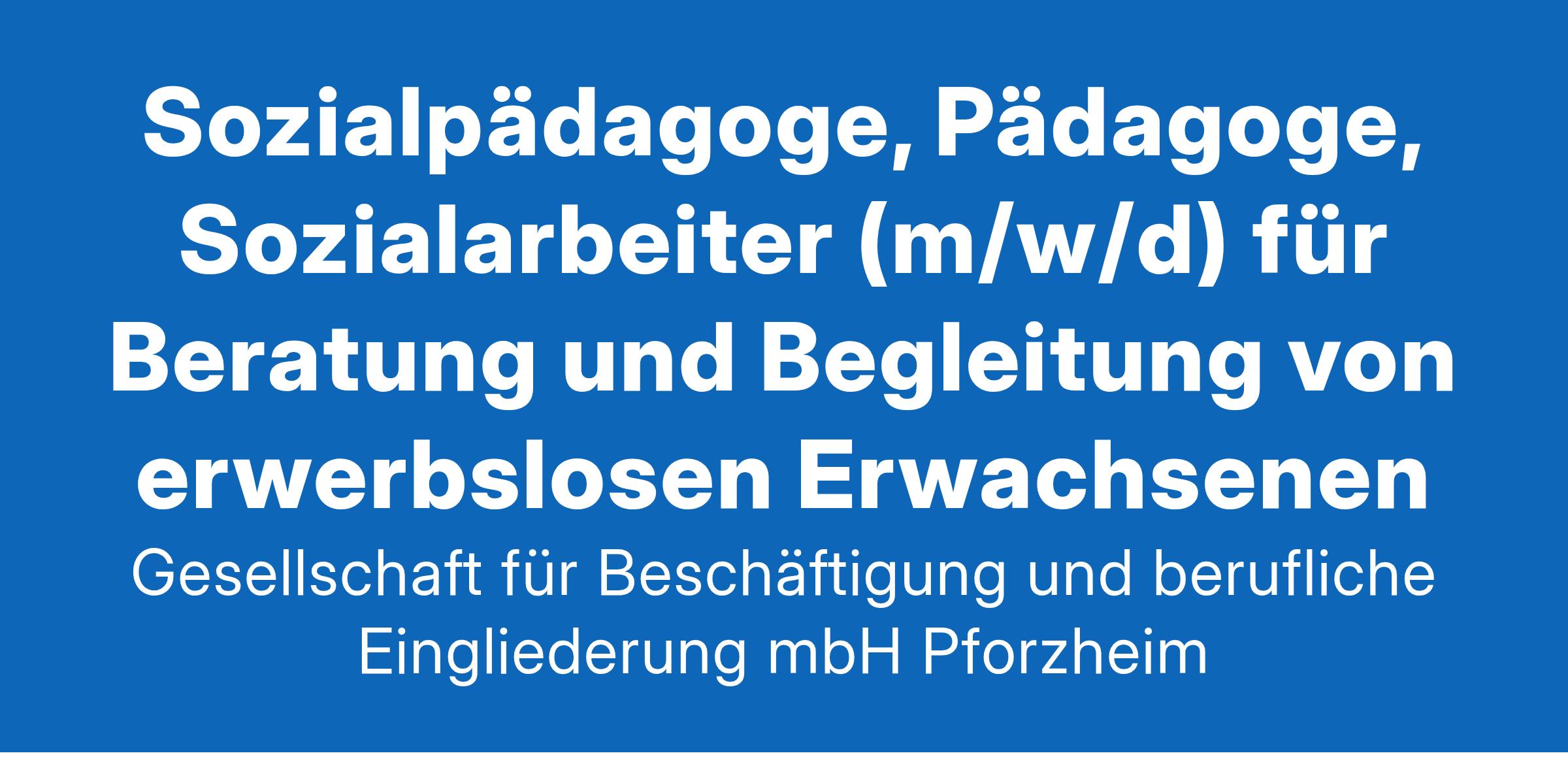mit einer wöchentlichen Arbeitszeit bis 39 Stunden.Tätigkeiten und Verantwortlichkeiten:Sie coachen, beraten und unterstützen erwerbslose Erwachsene mit Fokus auf berufliche Qualifizierung und Weiterbildung. Das Ziel ist klar: eine dauerhafte berufliche Eingliederung.Sie entwickeln individuelle Ressourcen, stärken Kompetenzen und bauen Barrieren ab.Sie sind für die Unterstützung bei Bewerbungsaktivitäten zuständig, Sie führen Bewerbungstrainings durch und akquirieren Praktikumsplätze.Zudem erarbeiten Sie mit den Teilnehmenden Aktivierungs- und Eingliederungspläne und unterstützen bei der Umsetzung.Sie arbeiten mit den Teilnehmenden, den Ansprechpartner*innen beim Jobcenter, lokalen Unternehmen und Netzwerkpartnern zusammen und dokumentieren Anwesenheiten, Beratungsgespräche und Aktivierungspläne.Sie verfügen über:Anerkannten Berufs- oder Studienabschluss im pädagogischen oder psychologischen Bereich (mindestens Bachelorabschluss Soziale Arbeit, (Sozial-) Pädagogik, Psychologie, Bildungswissenschaft)Einschlägige Berufserfahrung in der Arbeit mit arbeitsmarktfernen MenschenErfahrungen in der teilnehmerorientierten Gesprächsführung, Betreuung und Beratung benachteiligter MenschenGute Kenntnisse des regionalen Arbeitsmarkts und der Rekrutierungsprozesse in UnternehmenSehr gute schriftliche Ausdrucksfähigkeit und sicheren Umgang mit MS-Office-AnwendungenBelastbarkeit, Flexibilität und die Fähigkeit zu selbständigem HandelnHohe Sensibilität für soziale ProblemstellungenWir bieten Ihnen:Beschäftigung gemäß Tarifvertrag des öffentlichen Dienstes (Sozial- und Erziehungsdienst)Kostenfreies DeutschlandticketVertrauensarbeitszeitBetriebsrente der ZVK (Zusatzversorgungskasse des Kommunalen Versorgungsverband Baden-Württemberg)Abwechslungsreiche und verantwortungsvolle Tätigkeit in einem motivierten TeamTätigkeitsbezogene WeiterbildungenWir haben Sie überzeugt?Die Stellen sind sachlich befristet und gebunden an die Verträge mit den Bundesministerien.