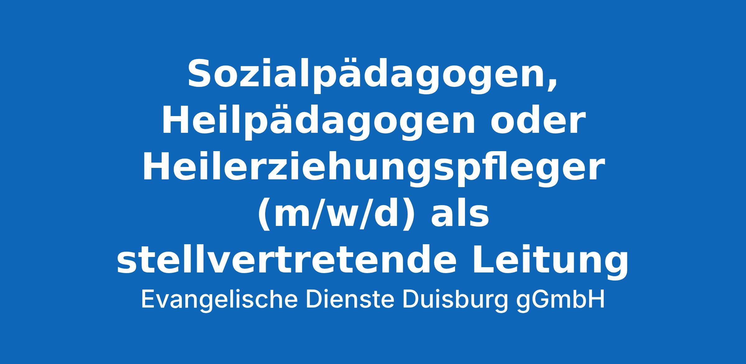 Eine/n Sozialpädagogen, Heilpädagogen oder Heilerziehungspfleger (m/w/d) für 39 Std./Woche als stellvertretende Leitung
