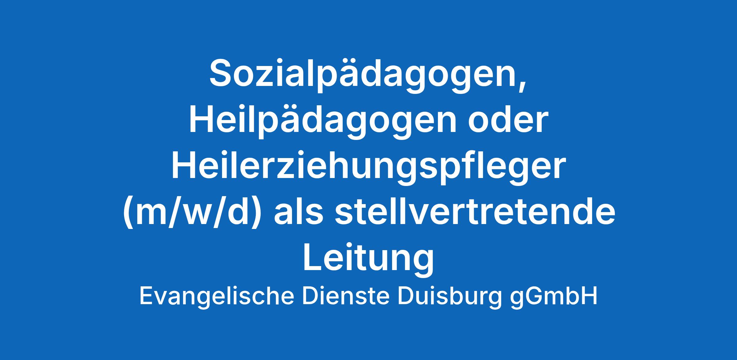 Eine/n Sozialpädagogen, Heilpädagogen oder Heilerziehungspfleger (m/w/d) für 39 Std./Woche als stellvertretende Leitung